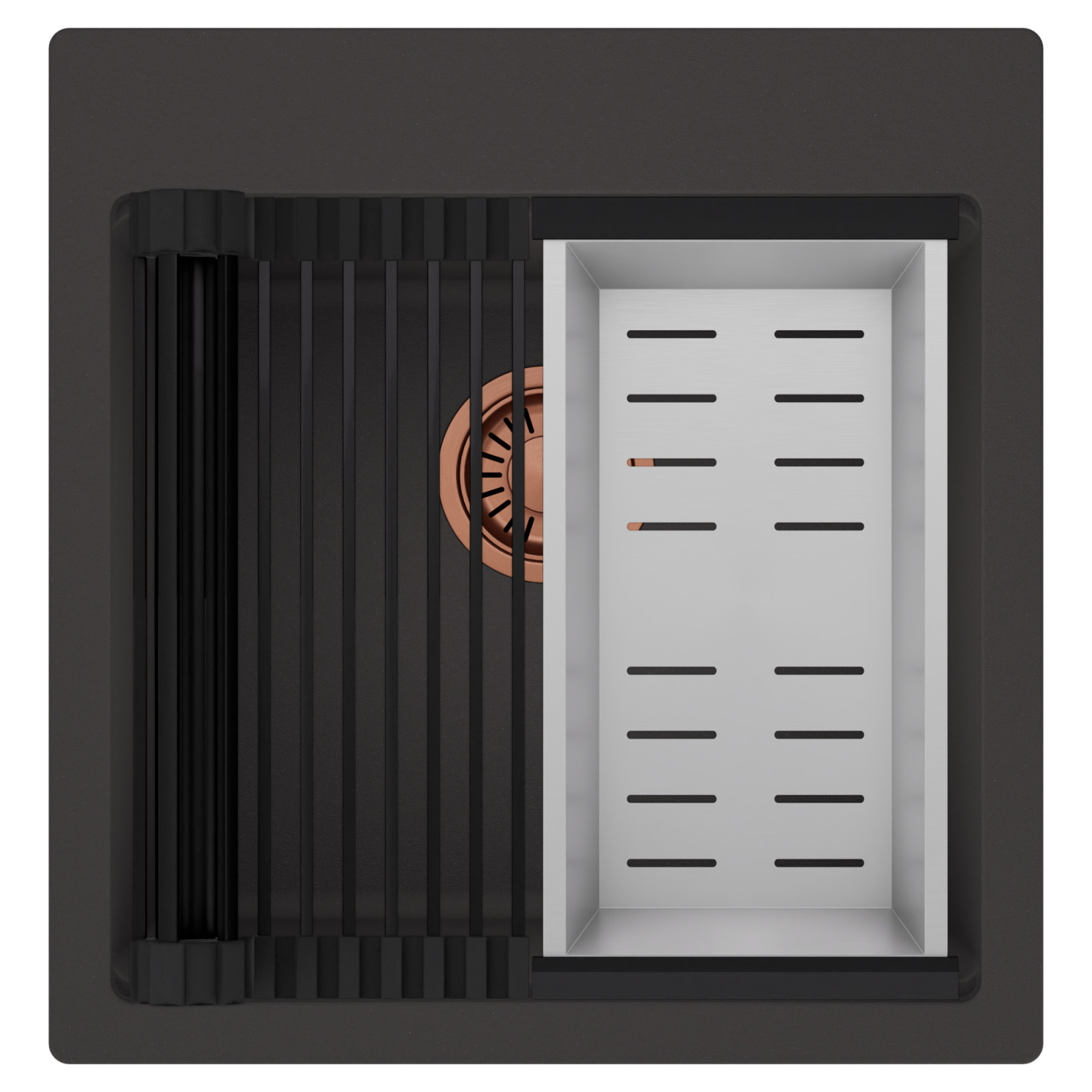HD Infinity 48 egymedencés mosogatótálca szett, csepegtetőráccsal és kosárral, matt antracit