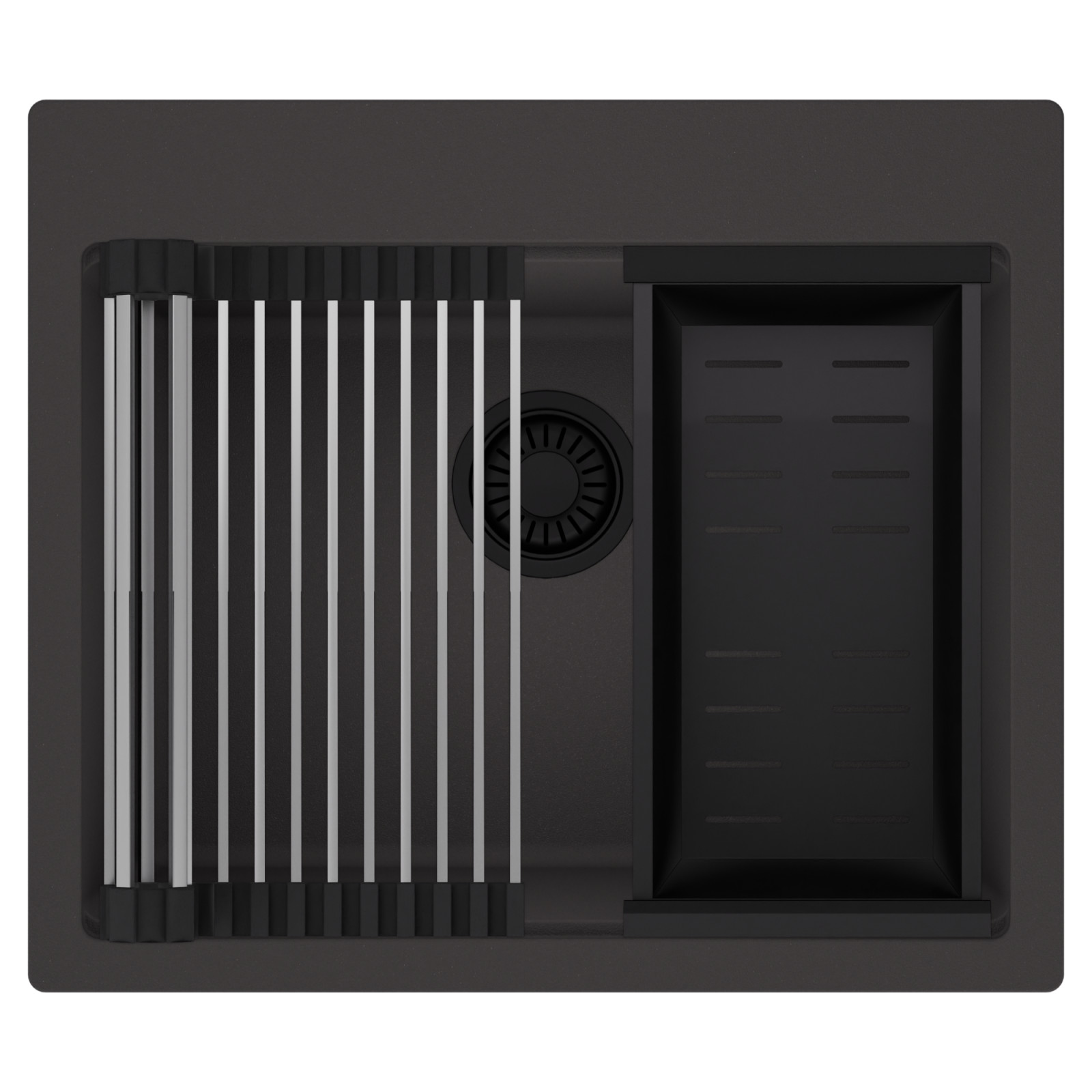 HD Infinity 58 egymedencés mosogatótálca szett, csepegtetőráccsal és kosárral, matt antracit