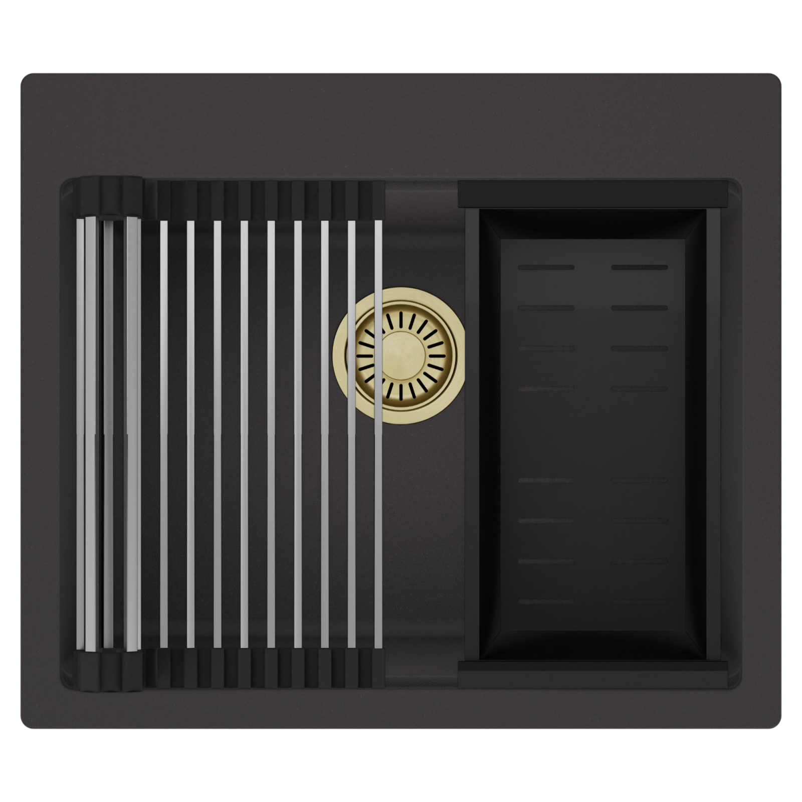 HD Infinity 58 egymedencés mosogatótálca szett, csepegtetőráccsal és kosárral, matt antracit