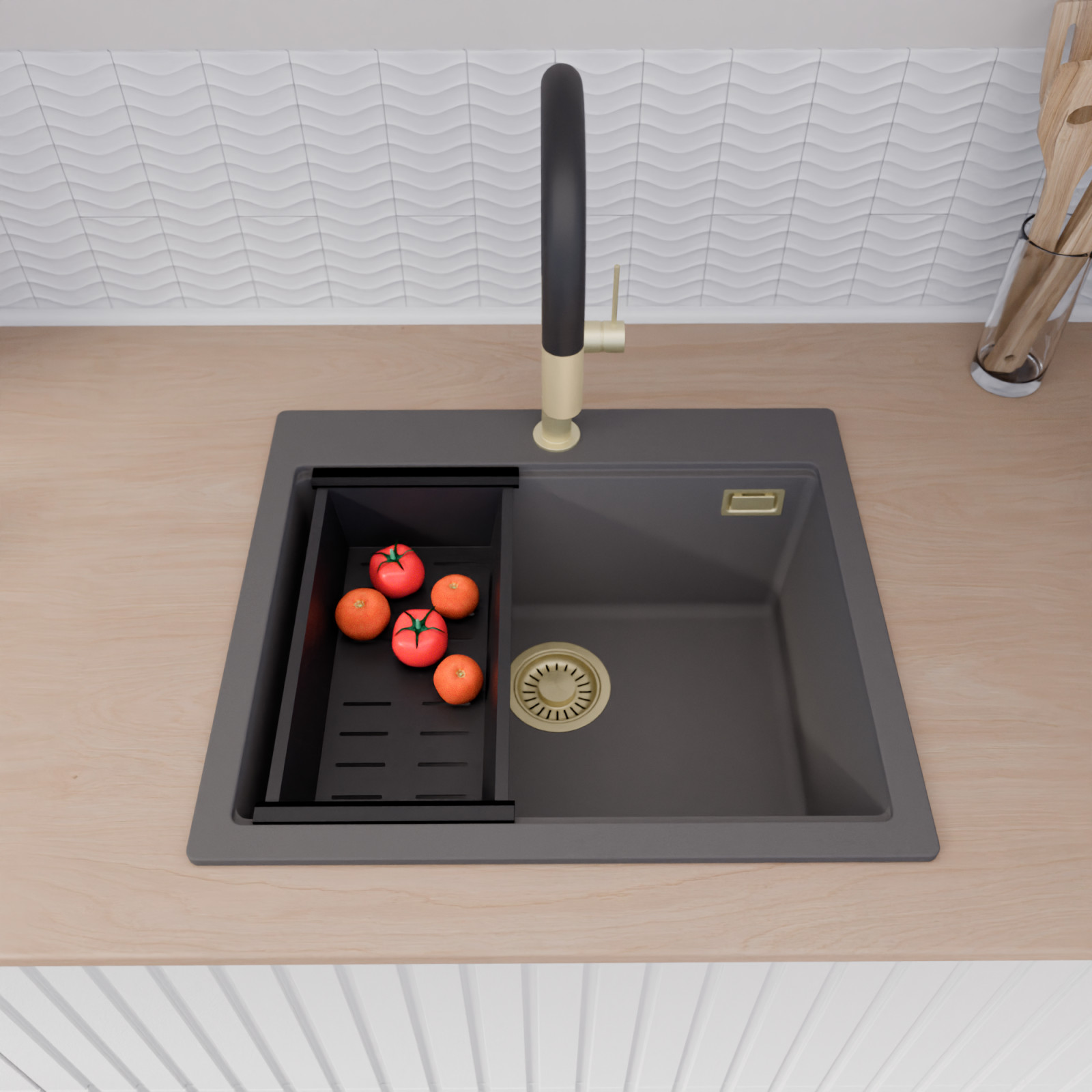 A mosogató prémium minőségű gránit kompozitból készült. Letisztult megjelenése mellett rendkívül praktikus, így bármilyen stílusú konyhába harmonikusan illeszkedik. A strapabíró gránit anyag hosszú távon is megbízható használatot garantál.