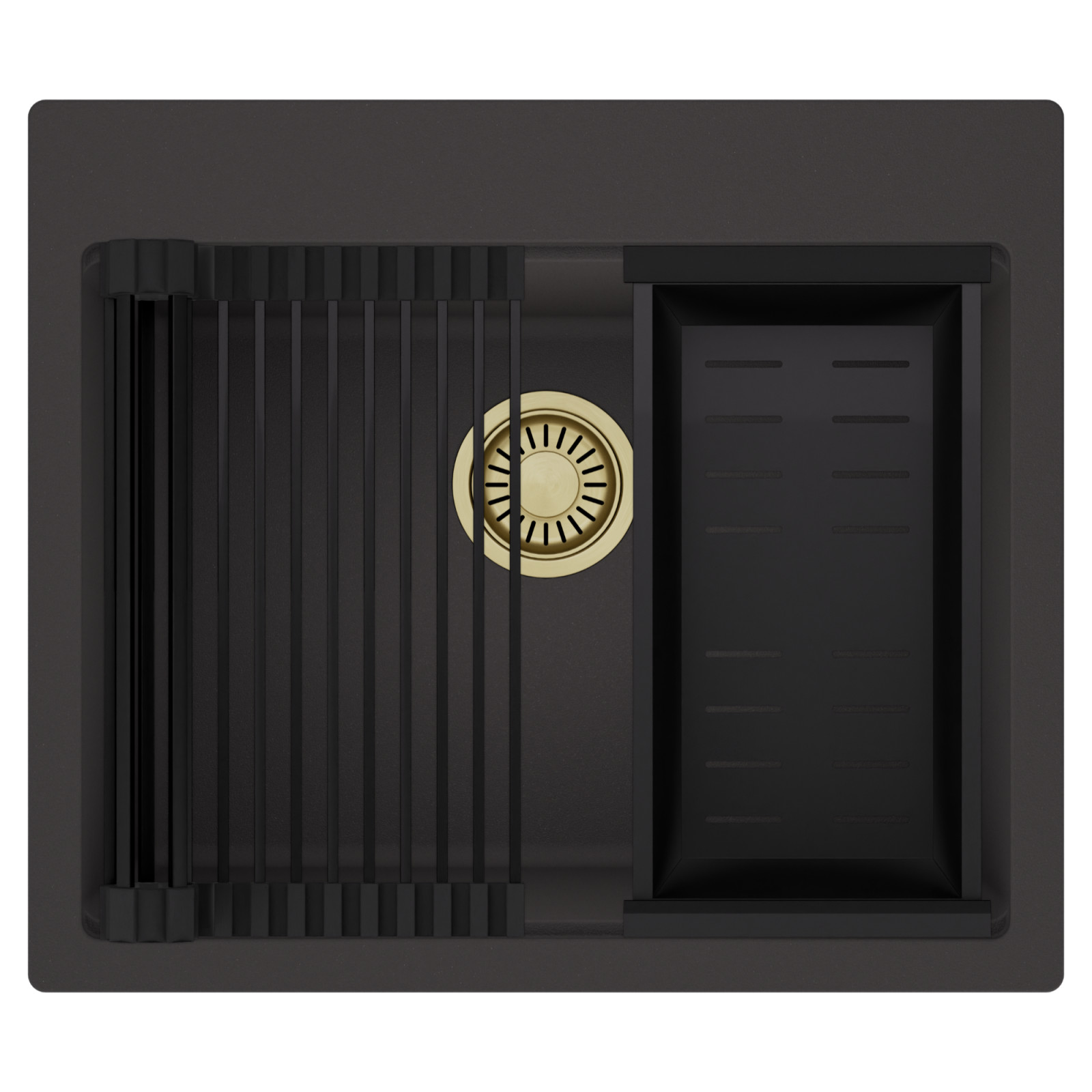HD Infinity 58 egymedencés mosogatótálca szett, csepegtetőráccsal és kosárral, matt antracit