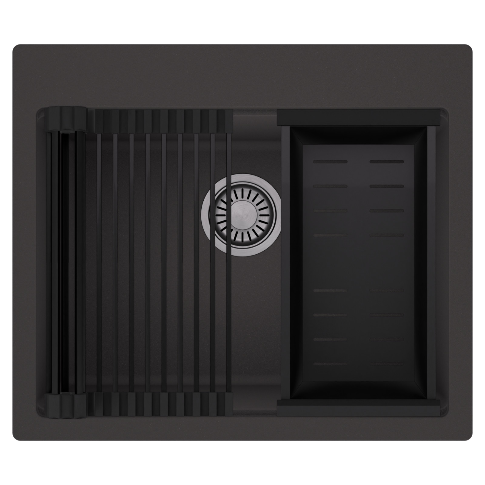 HD Infinity 58 egymedencés mosogatótálca szett, csepegtetőráccsal és kosárral, matt antracit