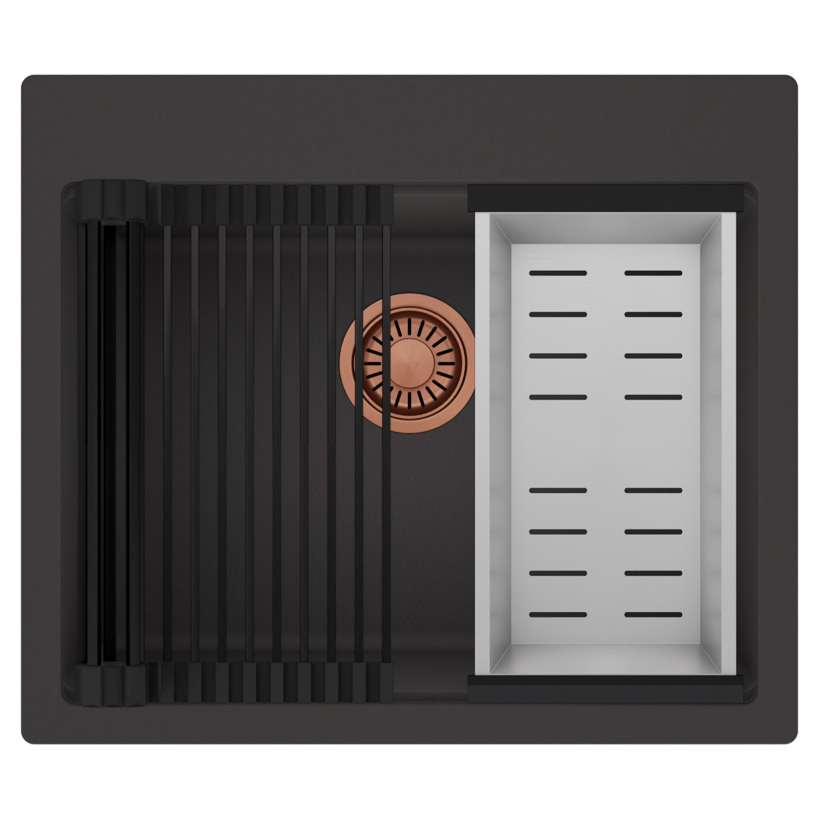 HD Infinity 58 egymedencés mosogatótálca szett, csepegtetőráccsal és kosárral, matt antracit