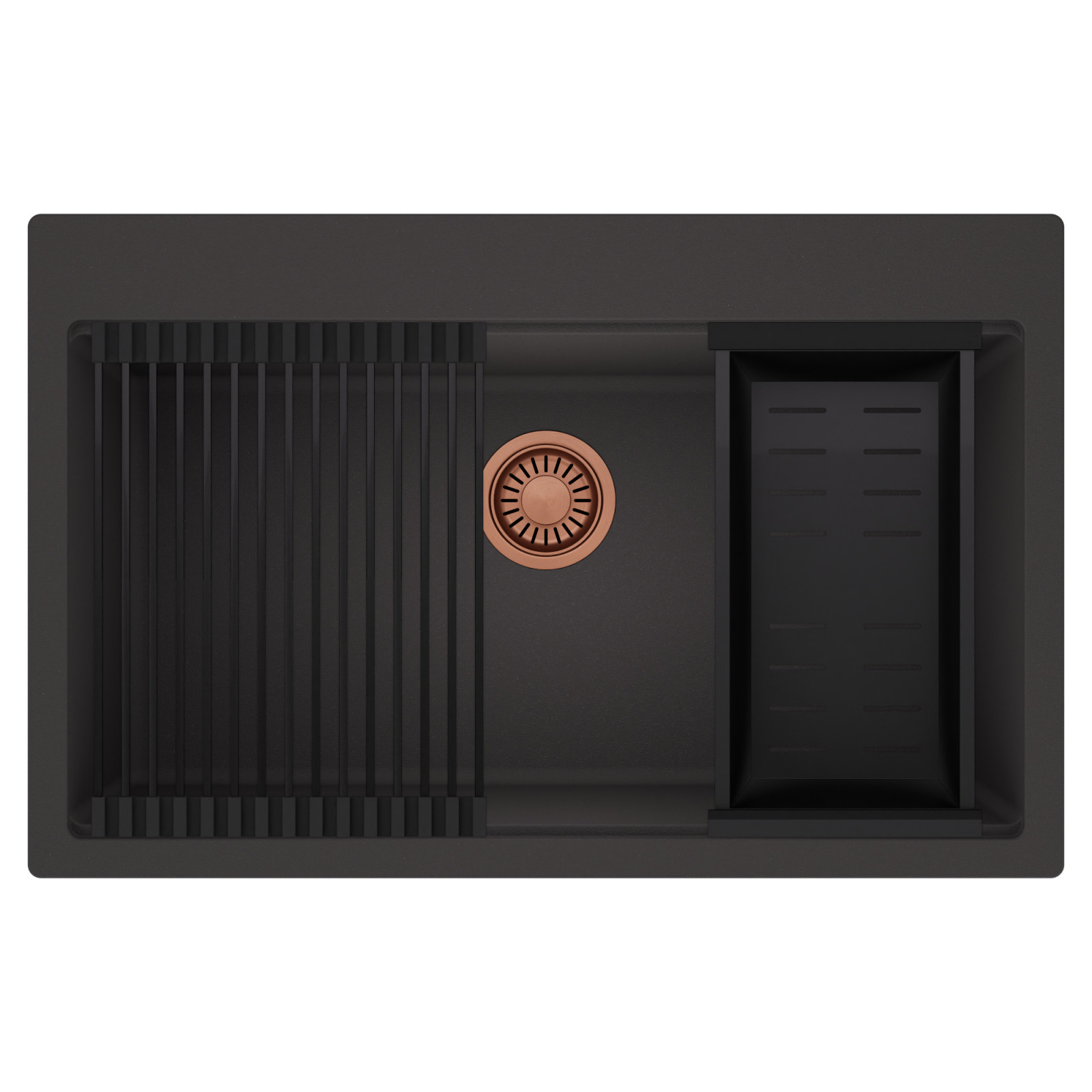 HD Infinity 78 egymedencés mosogatótálca szett, csepegtetőráccsal és kosárral, matt antracit