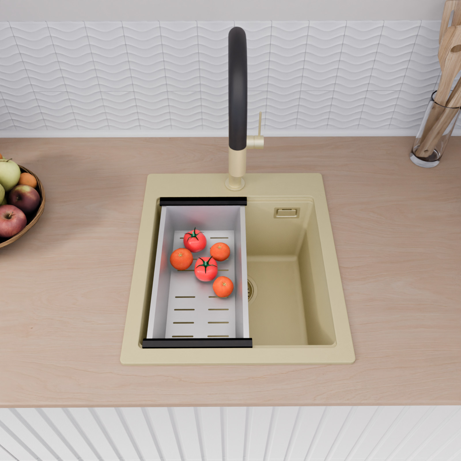 A mosogató prémium minőségű gránit kompozitból készült. Letisztult megjelenése mellett rendkívül praktikus, így bármilyen stílusú konyhába harmonikusan illeszkedik. A strapabíró gránit anyag hosszú távon is megbízható használatot garantál.