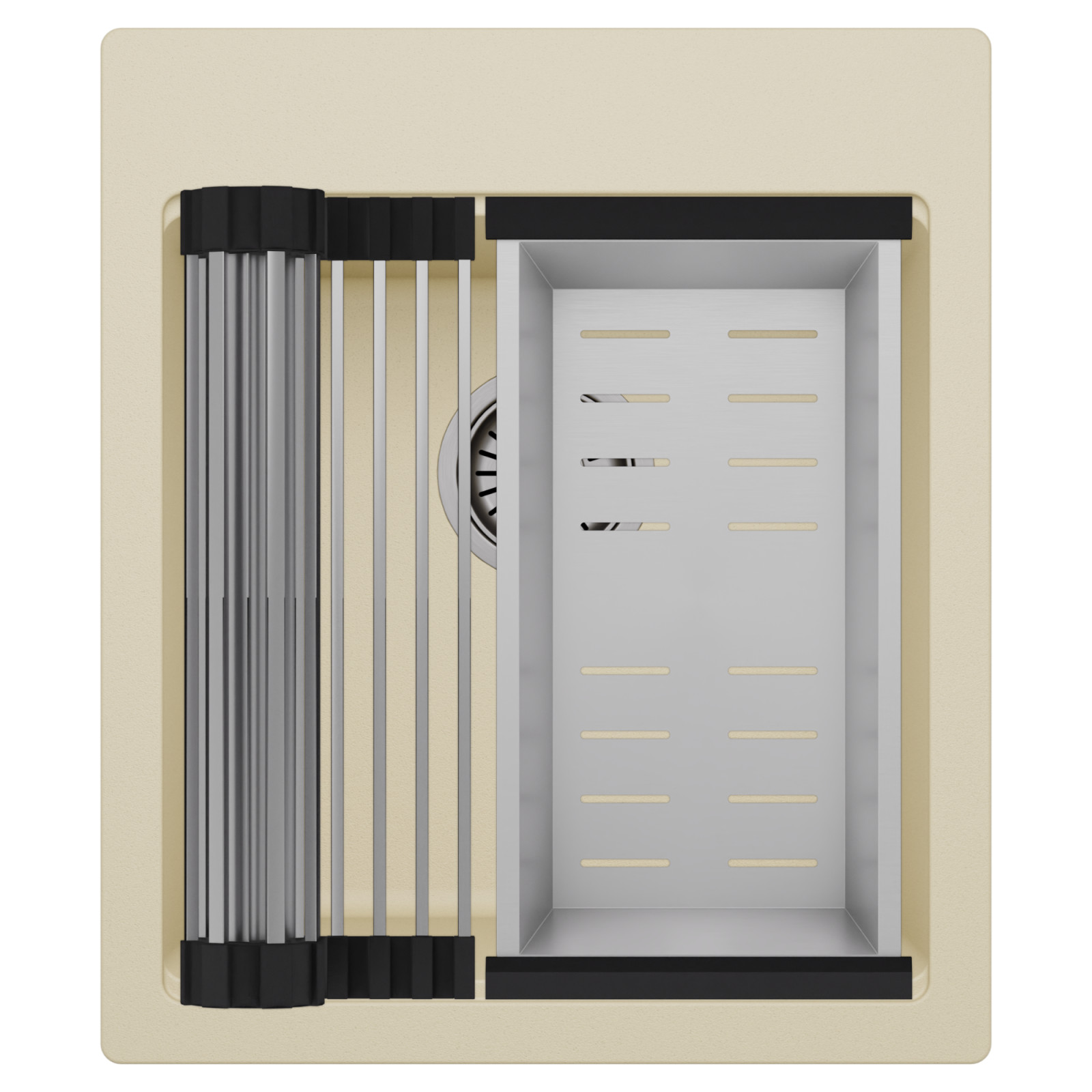 HD Infinity Beige 43 egymedencés mosogatótálca szett, csepegtetőráccsal és kosárral, soft bézs