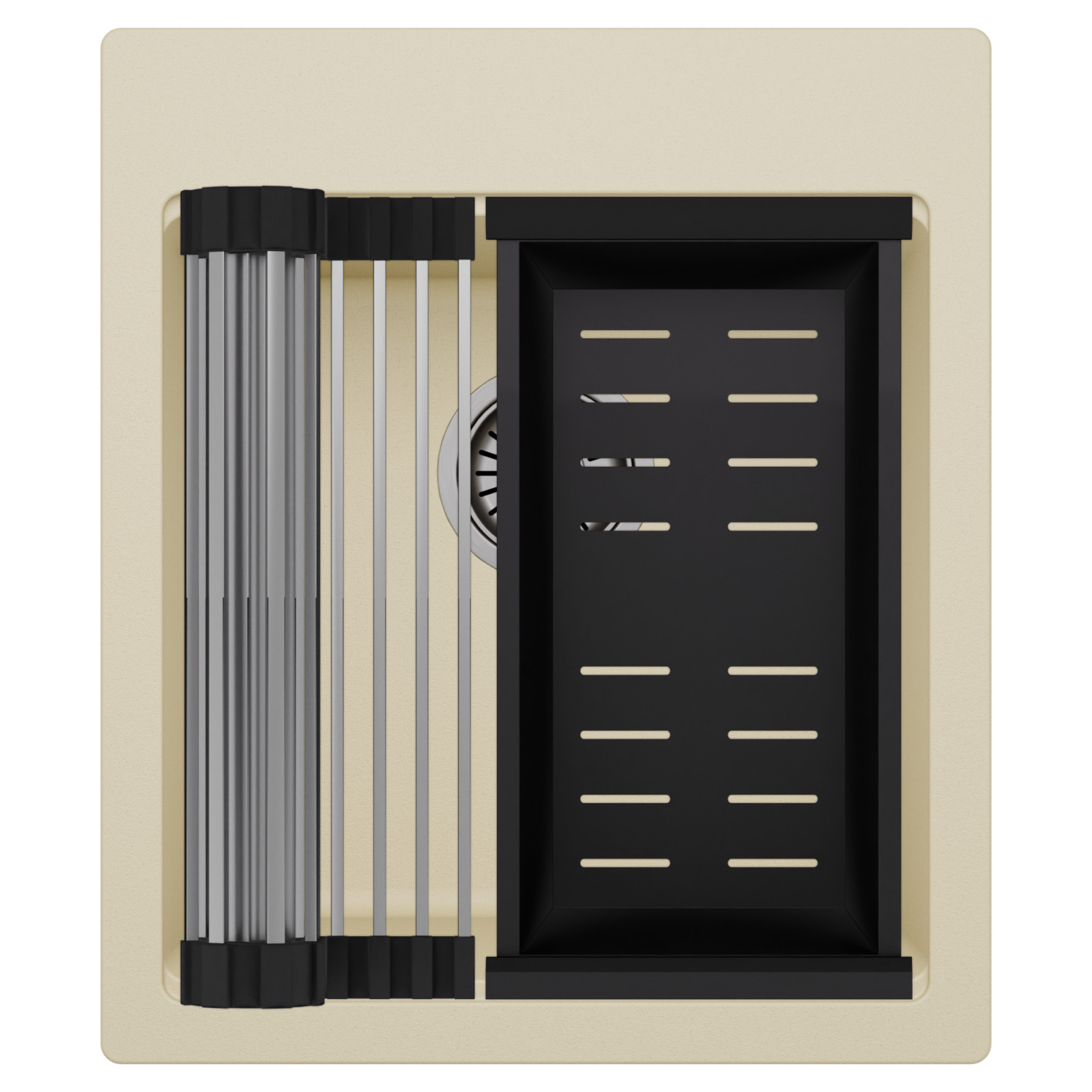 HD Infinity Beige 43 egymedencés mosogatótálca szett, csepegtetőráccsal és kosárral, soft bézs