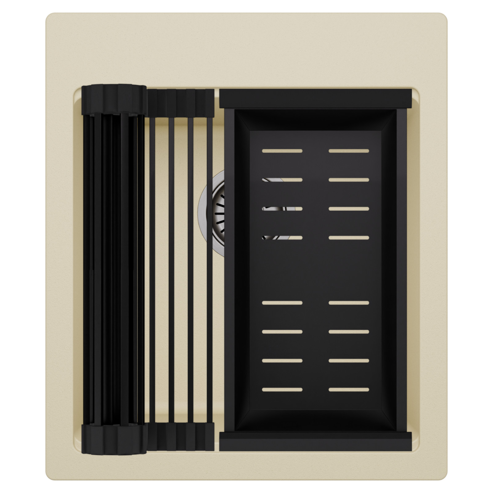HD Infinity Beige 43 egymedencés mosogatótálca szett, csepegtetőráccsal és kosárral, soft bézs