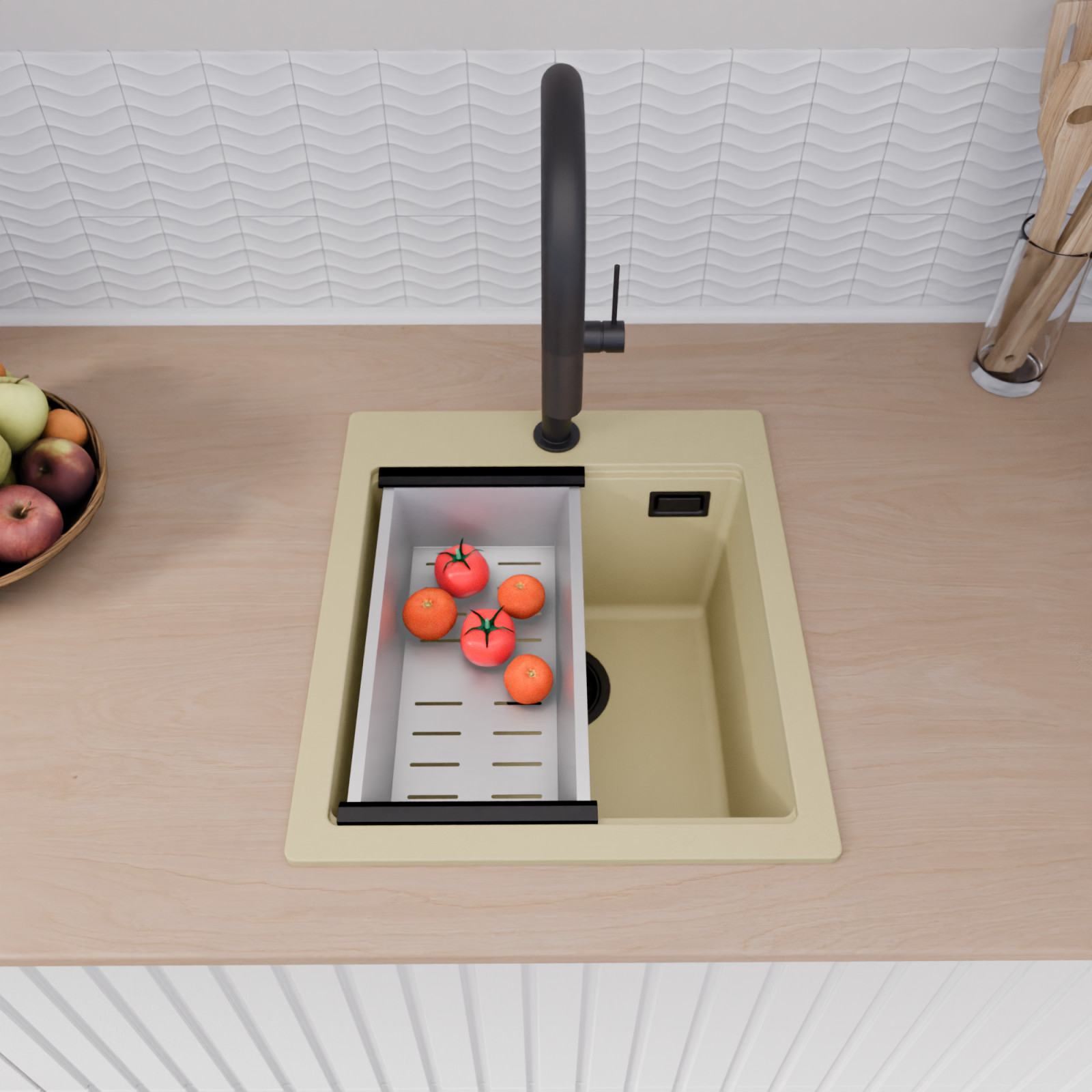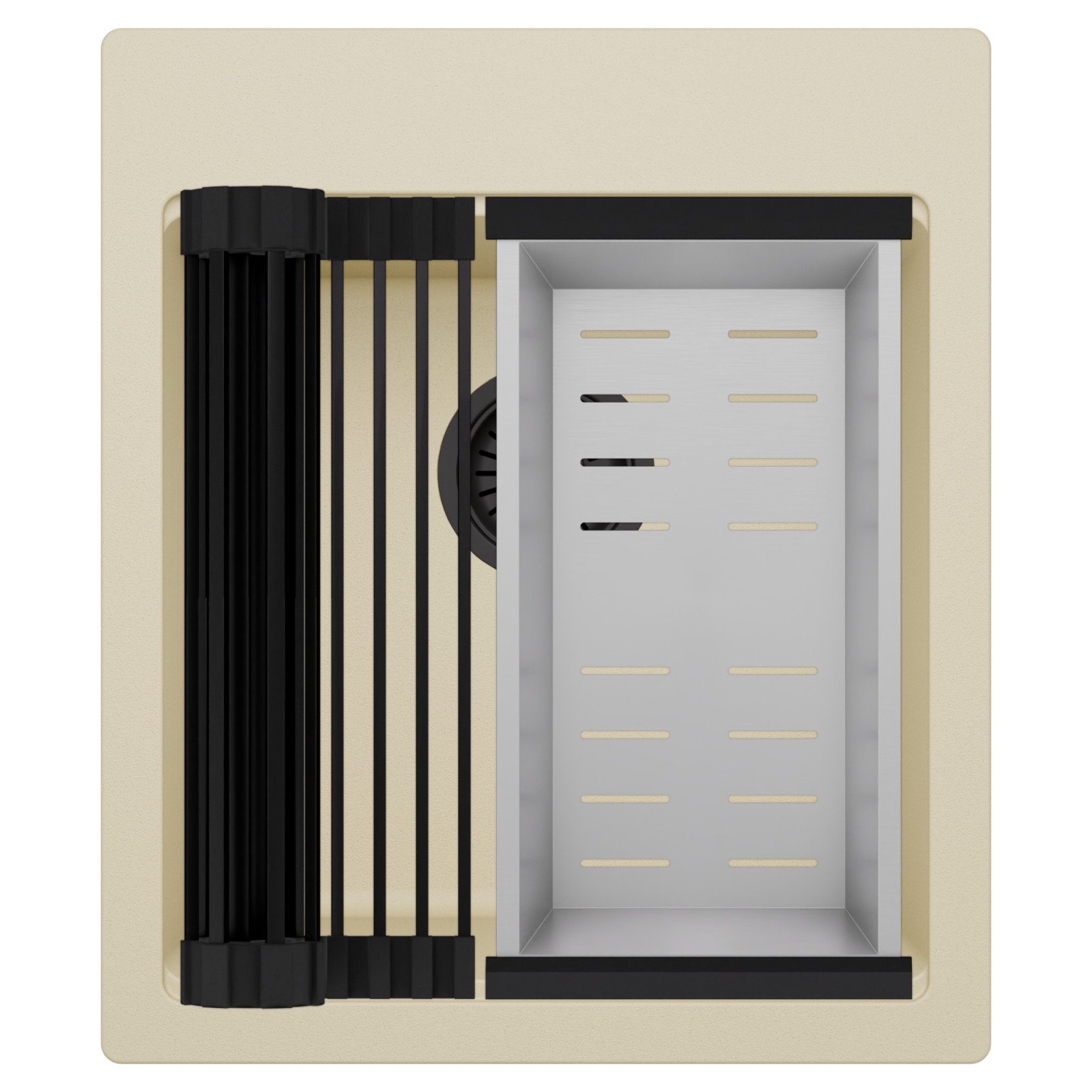HD Infinity Beige 43 egymedencés mosogatótálca szett, csepegtetőráccsal és kosárral, soft bézs