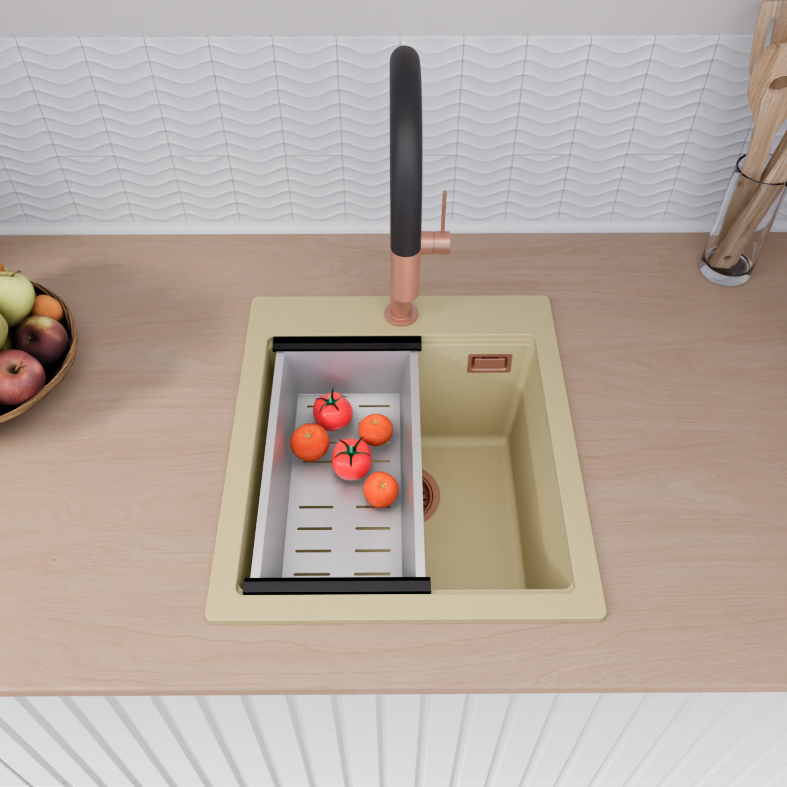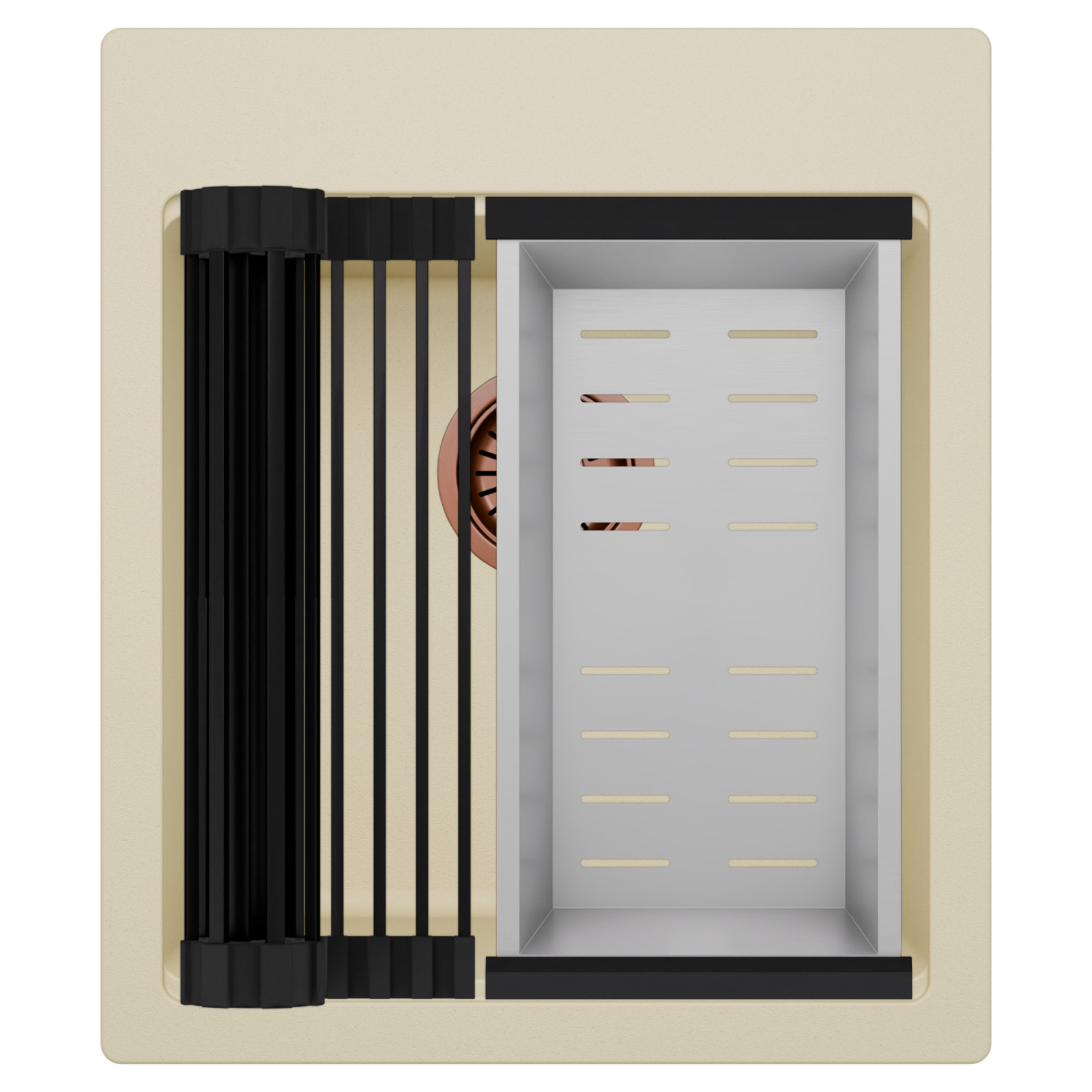 HD Infinity Beige 43 egymedencés mosogatótálca szett, csepegtetőráccsal és kosárral, soft bézs
