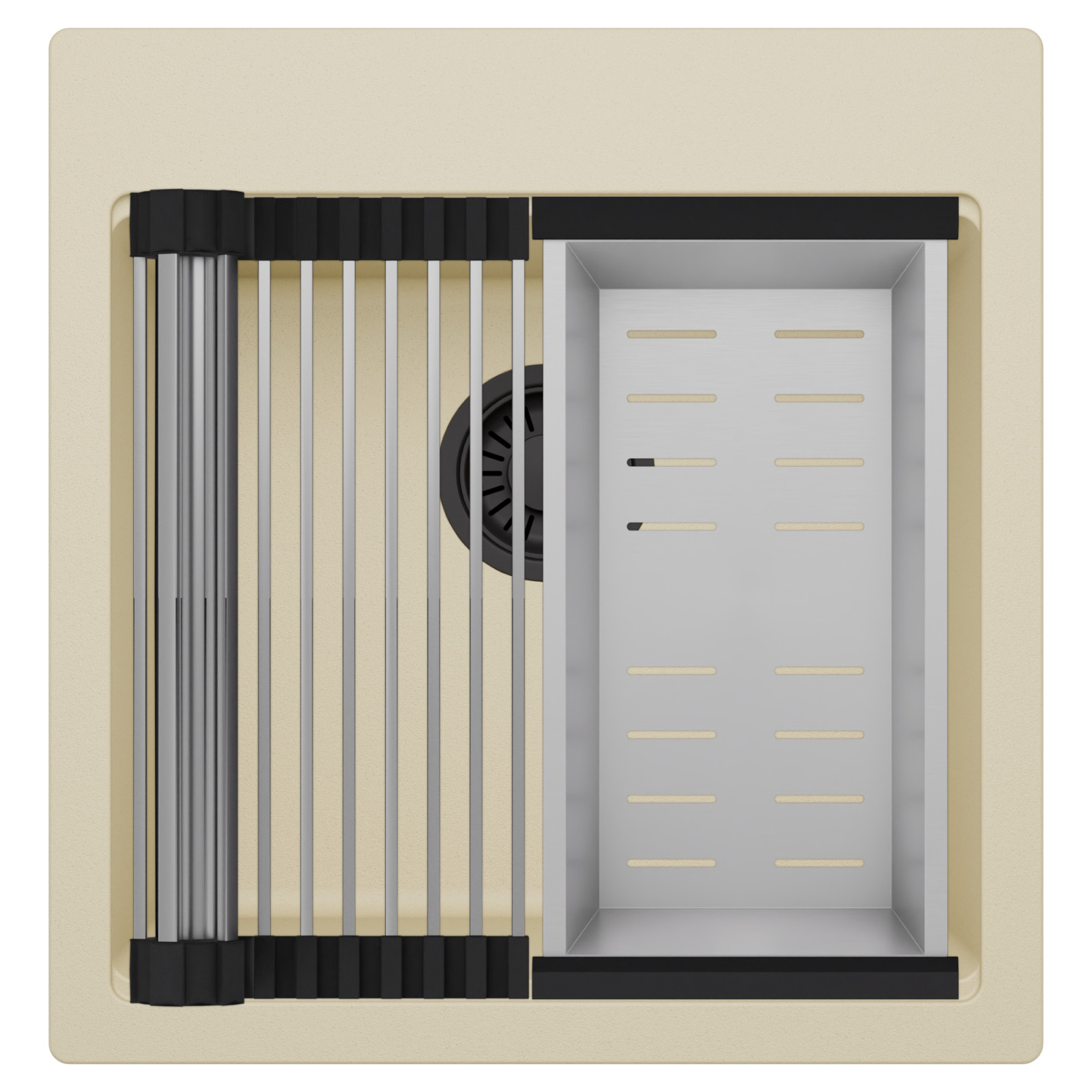 HD Infinity Beige 48 egymedencés mosogatótálca szett, csepegtetőráccsal és kosárral, soft bézs