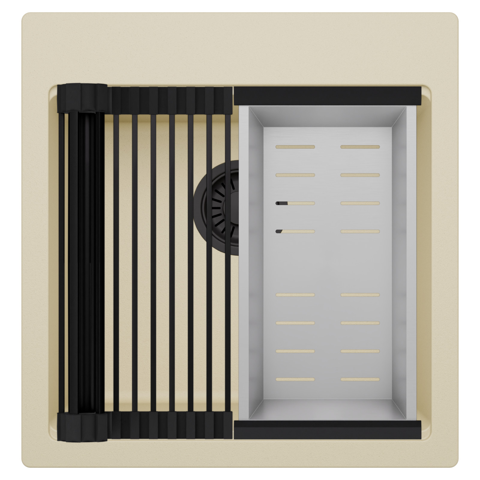 HD Infinity Beige 48 egymedencés mosogatótálca szett, csepegtetőráccsal és kosárral, soft bézs