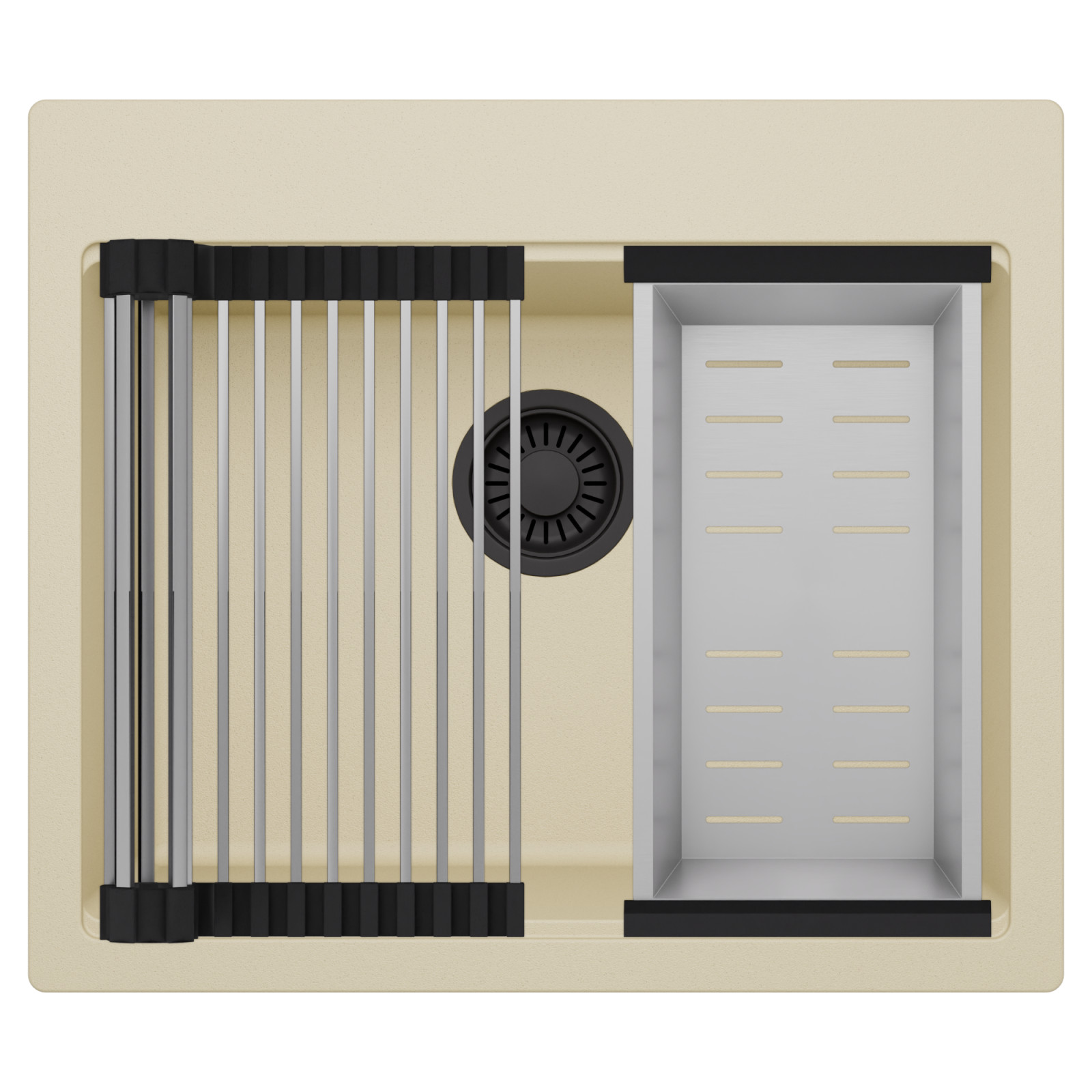 HD Infinity Beige 58 egymedencés mosogatótálca szett, csepegtetőráccsal és kosárral, soft bézs