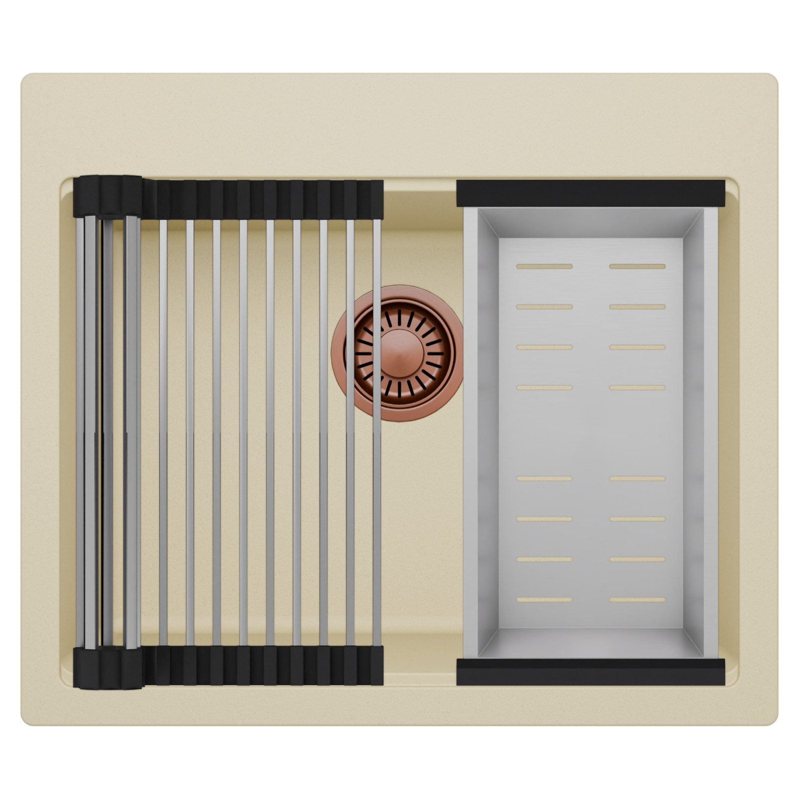 HD Infinity Beige 58 egymedencés mosogatótálca szett, csepegtetőráccsal és kosárral, soft bézs