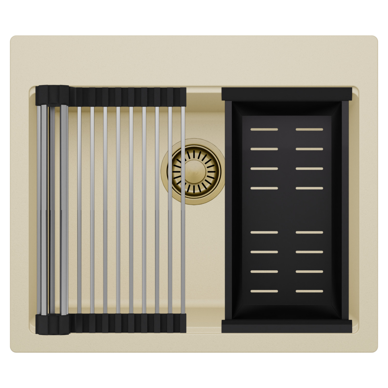 HD Infinity Beige 58 egymedencés mosogatótálca szett, csepegtetőráccsal és kosárral, soft bézs