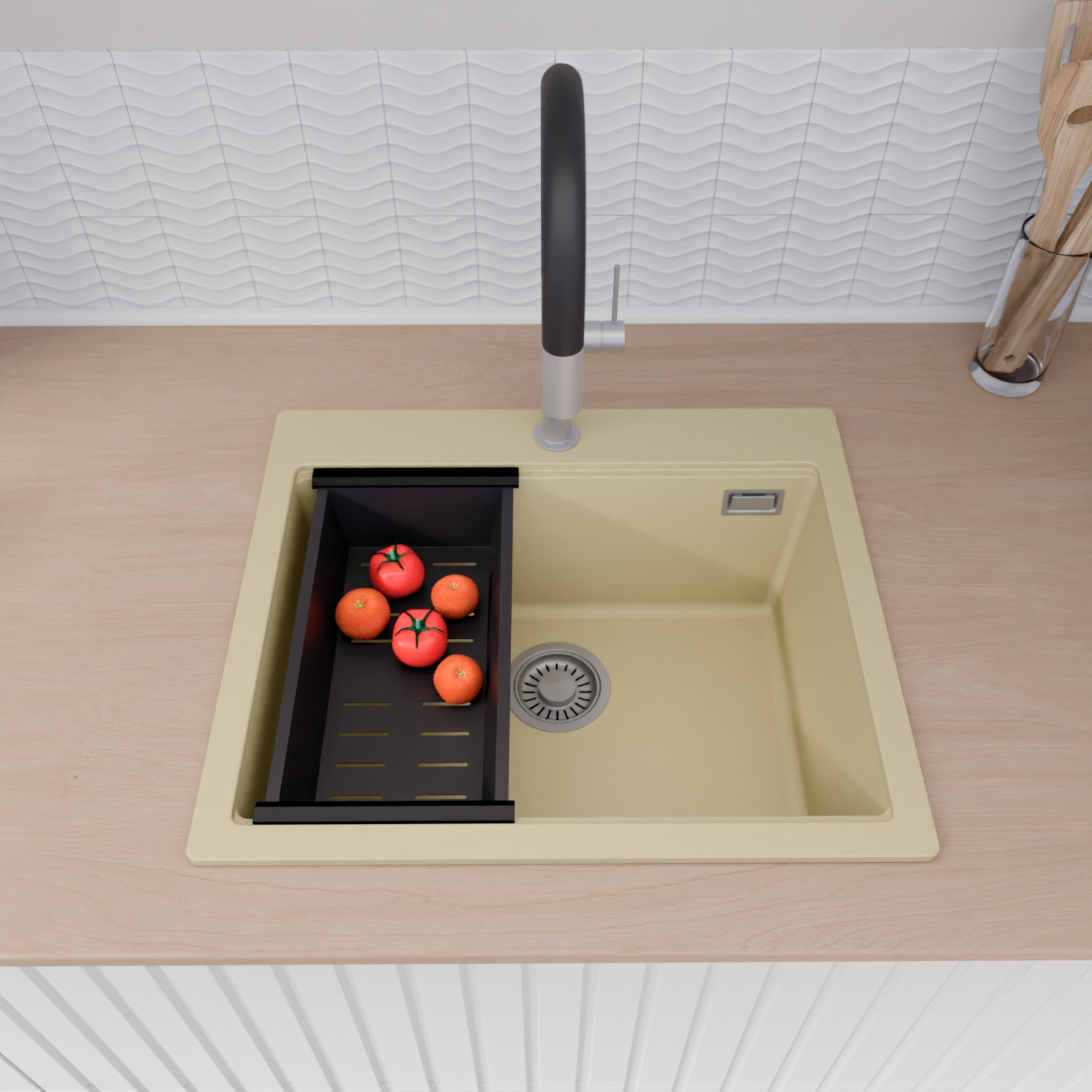 A mosogató prémium minőségű gránit kompozitból készült. Letisztult megjelenése mellett rendkívül praktikus, így bármilyen stílusú konyhába harmonikusan illeszkedik. A strapabíró gránit anyag hosszú távon is megbízható használatot garantál.