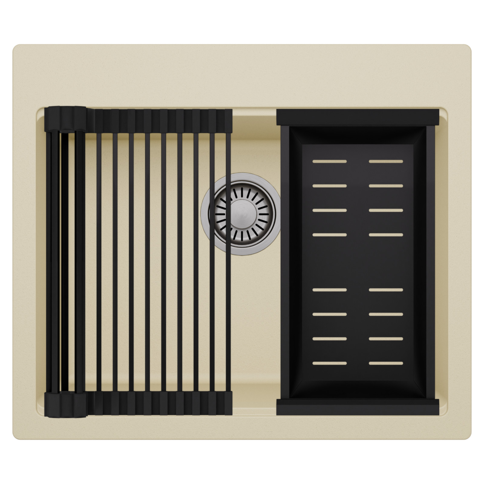 HD Infinity Beige 58 egymedencés mosogatótálca szett, csepegtetőráccsal és kosárral, soft bézs