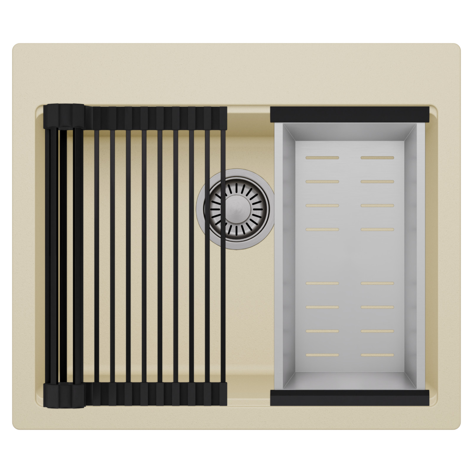 HD Infinity Beige 58 egymedencés mosogatótálca szett, csepegtetőráccsal és kosárral, soft bézs
