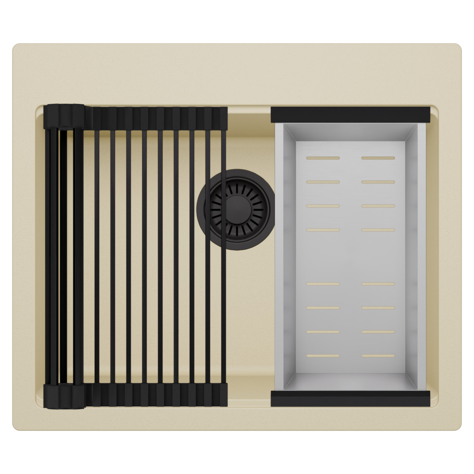 HD Infinity Beige 58 egymedencés mosogatótálca szett, csepegtetőráccsal és kosárral, soft bézs