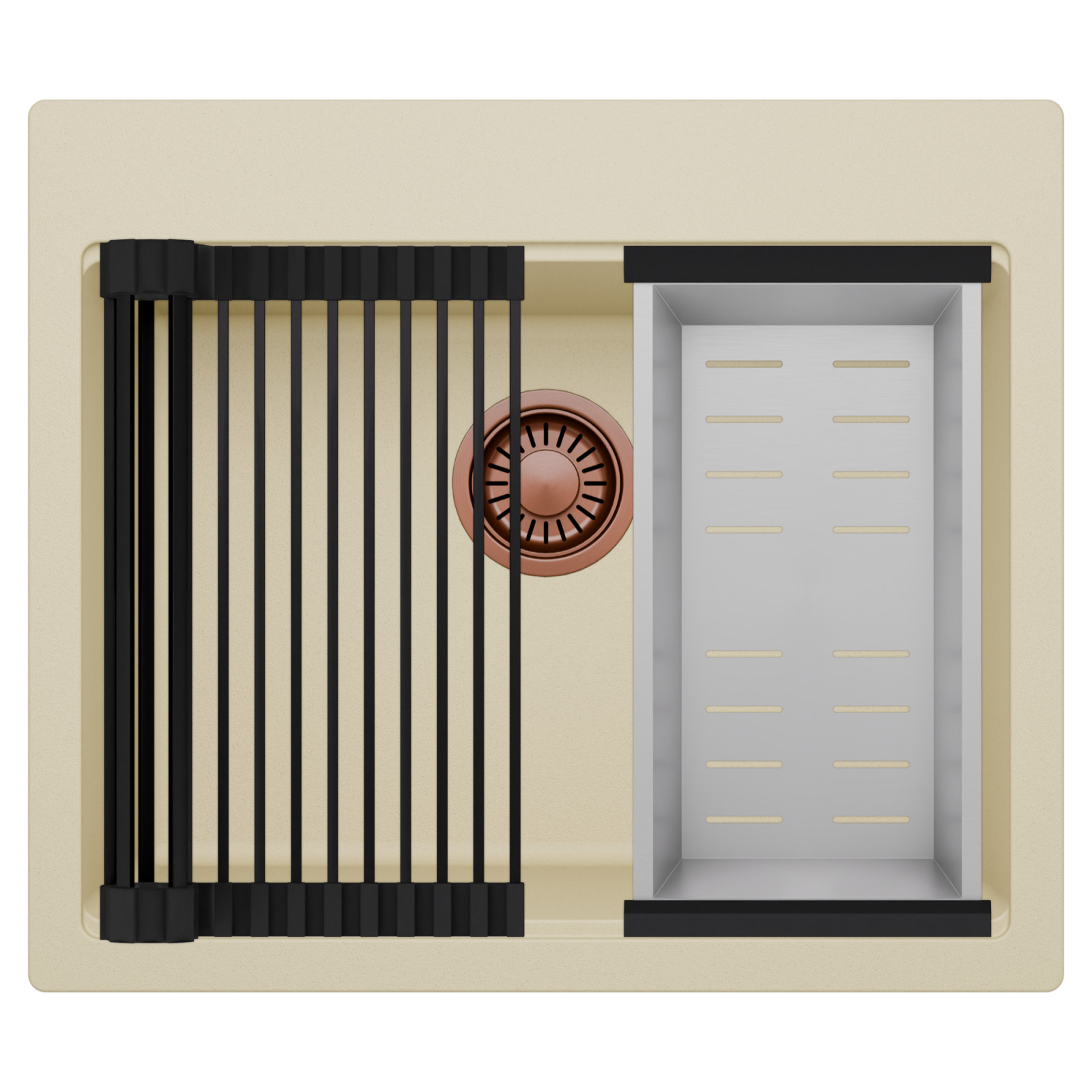 HD Infinity Beige 58 egymedencés mosogatótálca szett, csepegtetőráccsal és kosárral, soft bézs