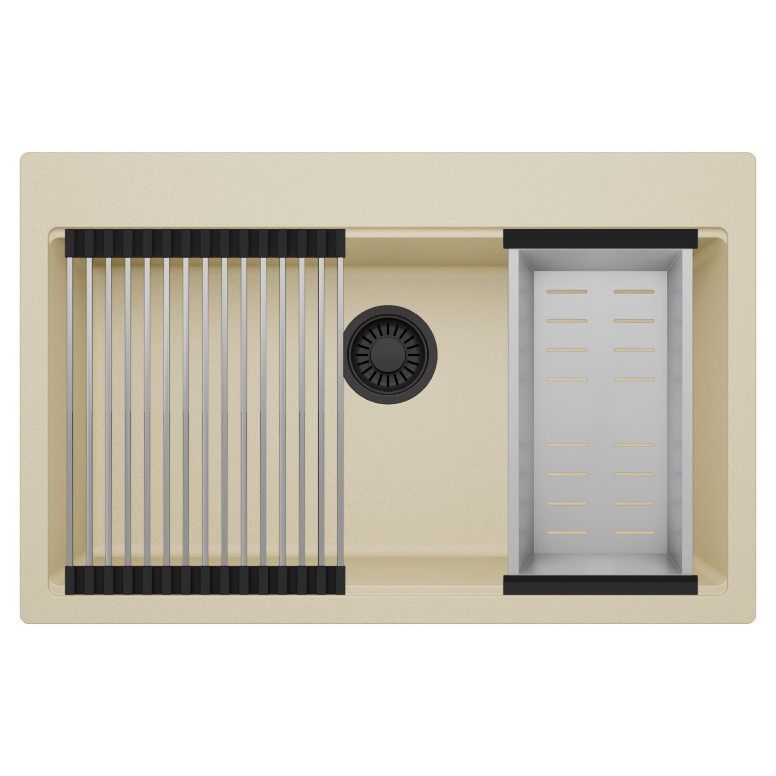 HD Infinity Beige 78 egymedencés mosogatótálca szett, csepegtetőráccsal és kosárral, soft bézs