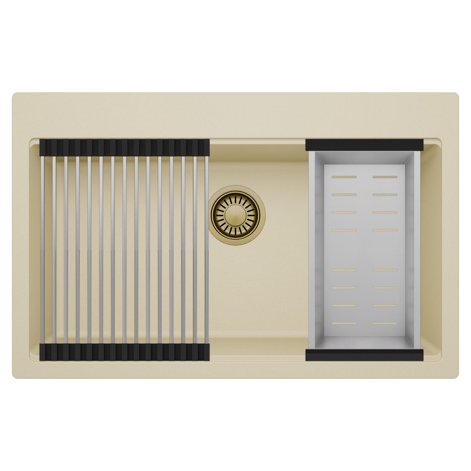 HD Infinity Beige 78 egymedencés mosogatótálca szett, csepegtetőráccsal és kosárral, soft bézs