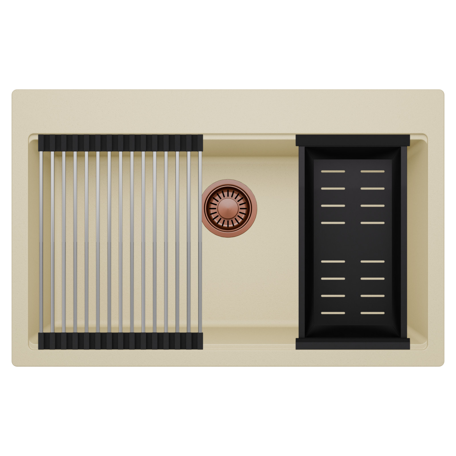 HD Infinity Beige 78 egymedencés mosogatótálca szett, csepegtetőráccsal és kosárral, soft bézs