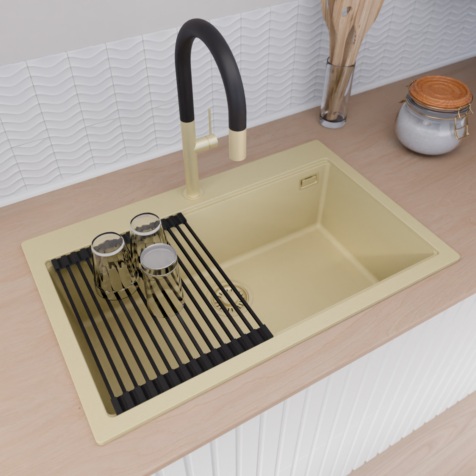 HD Infinity Beige 78 egymedencés mosogatótálca szett, csepegtetőráccsal és kosárral, soft bézs