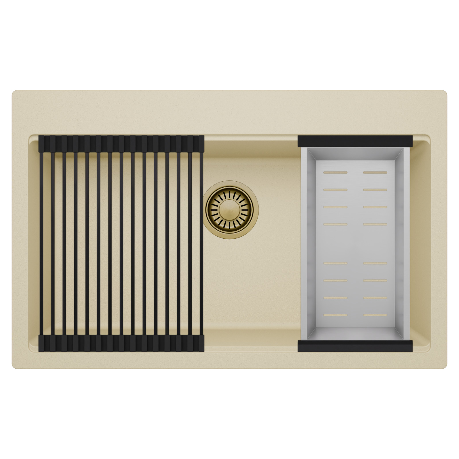 HD Infinity Beige 78 egymedencés mosogatótálca szett, csepegtetőráccsal és kosárral, soft bézs