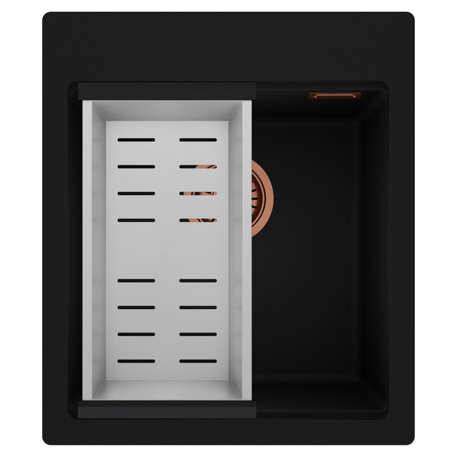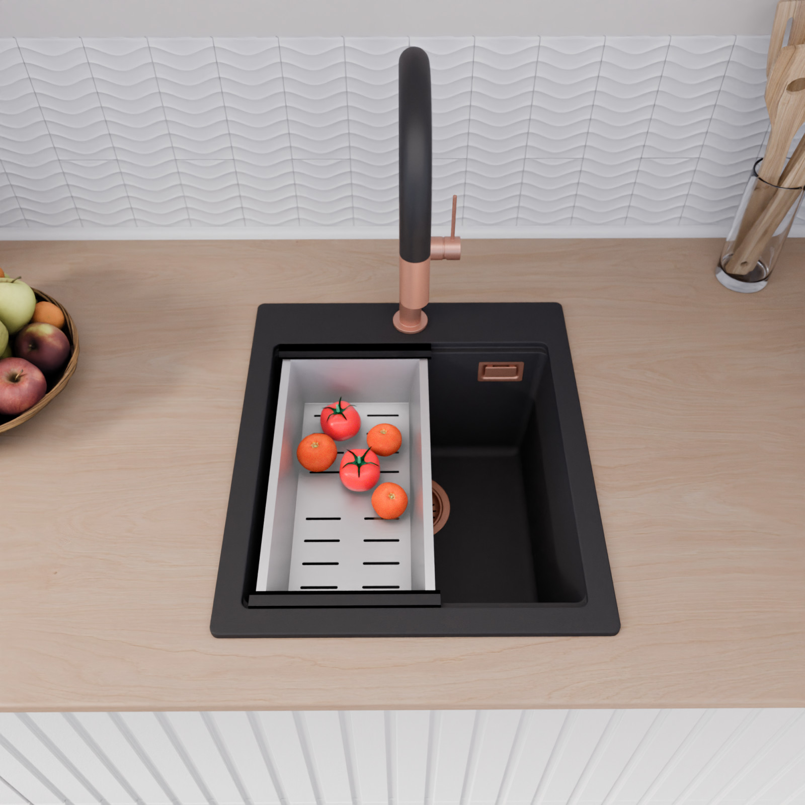 A mosogató prémium minőségű gránit kompozitból készült. Letisztult megjelenése mellett rendkívül praktikus, így bármilyen stílusú konyhába harmonikusan illeszkedik. A strapabíró gránit anyag hosszú távon is megbízható használatot garantál.