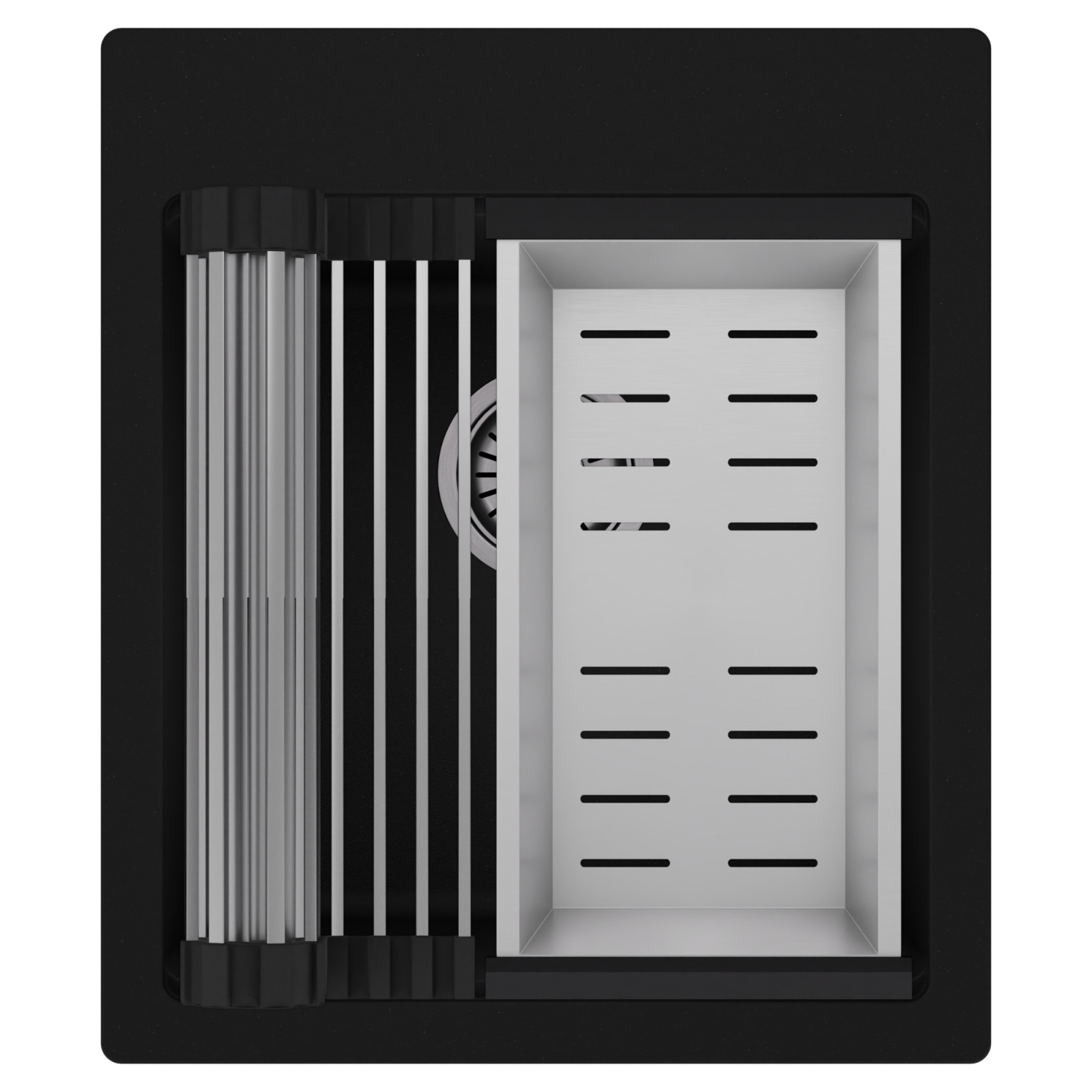 HD Infinity 43 egymedencés mosogatótálca szett, csepegtetőráccsal és kosárral, matt fekete