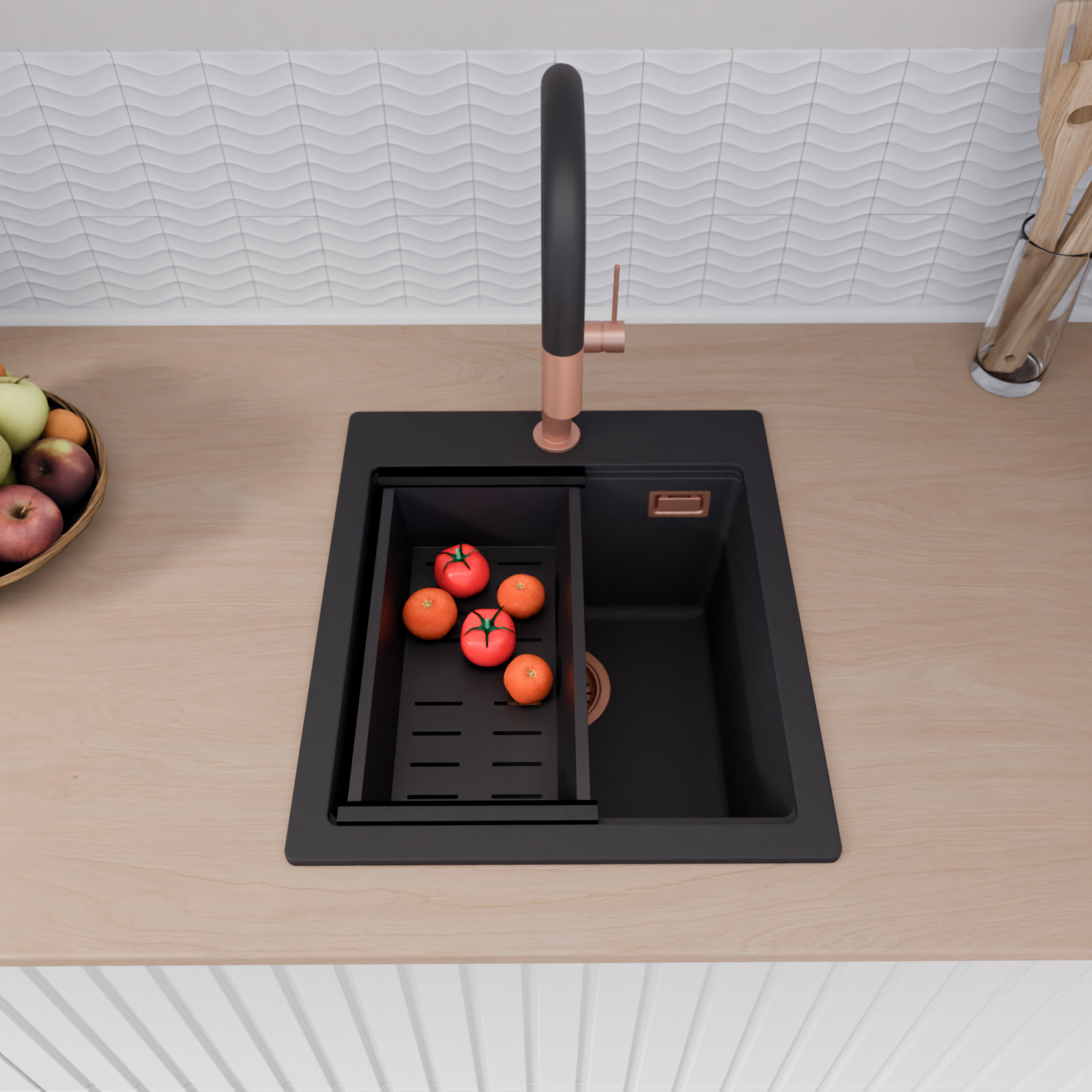 A mosogató prémium minőségű gránit kompozitból készült. Letisztult megjelenése mellett rendkívül praktikus, így bármilyen stílusú konyhába harmonikusan illeszkedik. A strapabíró gránit anyag hosszú távon is megbízható használatot garantál.