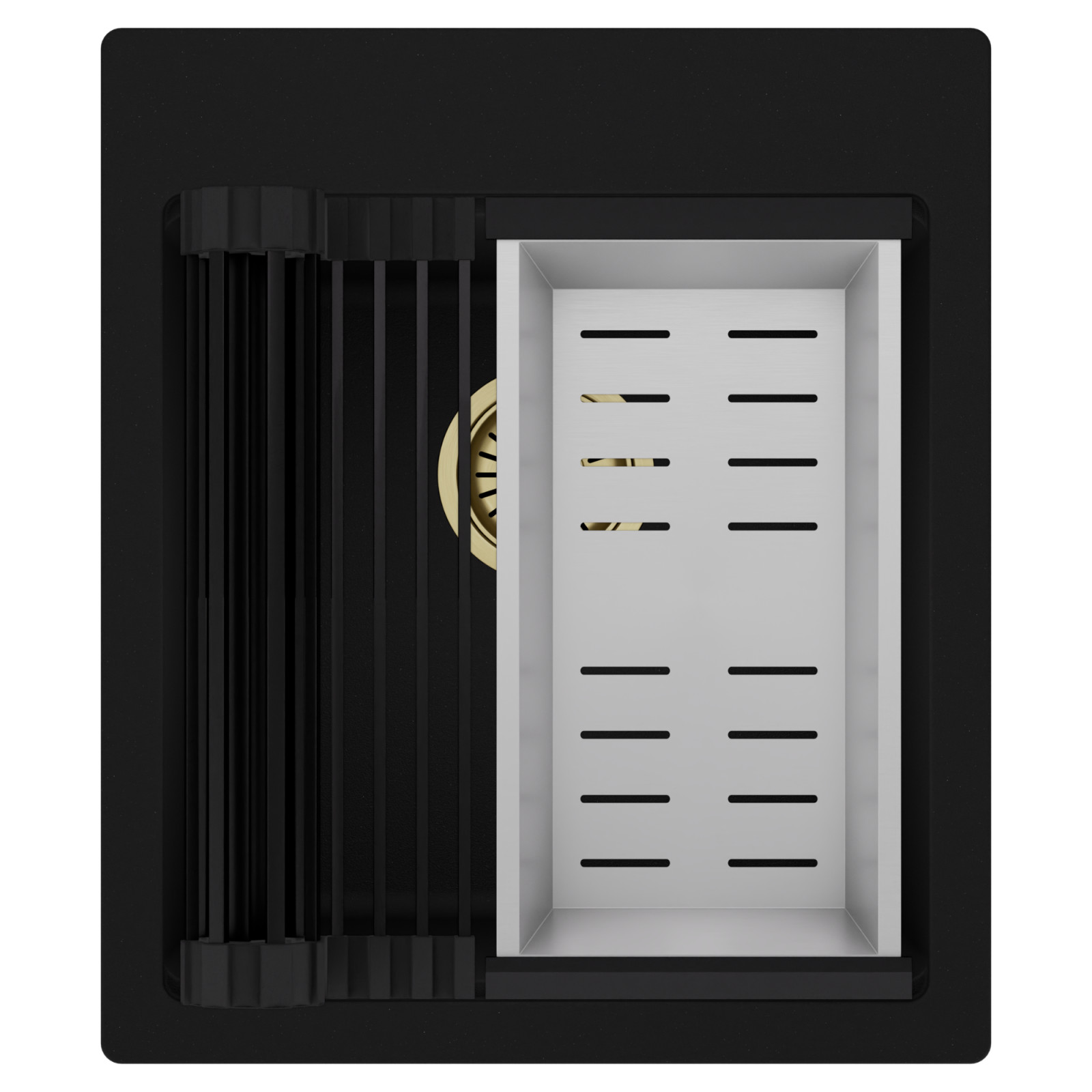 Termék mérete: 43x50 cm Szekrényméreti igény: 45 cm Medence mérete: 37x39x21,5 cm Medencék száma: Egymedencés Felhasználhatóság: Pultba építhető Könnyített fúratok száma: 3 Anyag: Gránit Anyagvastagság: 8-10 mm Tartozékok: Mosogatótálca, matt fekete csepegtetőrács, krómozott csepegtetőkosár, szifon - túlfolyóval és lefolyó takaróval Szifon szín: Szálcsiszolt arany Lefolyó takaró anyaga: Rozsdamentes acél HomeDepo SmartEdge Többfunkciós Peremrendszer