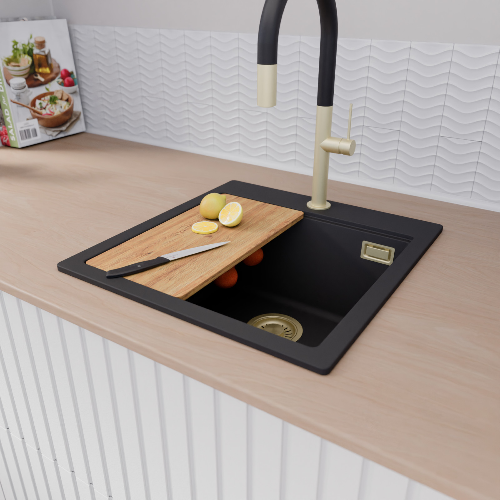 A mosogató prémium minőségű gránit kompozitból készült. Letisztult megjelenése mellett rendkívül praktikus, így bármilyen stílusú konyhába harmonikusan illeszkedik. A strapabíró gránit anyag hosszú távon is megbízható használatot garantál.