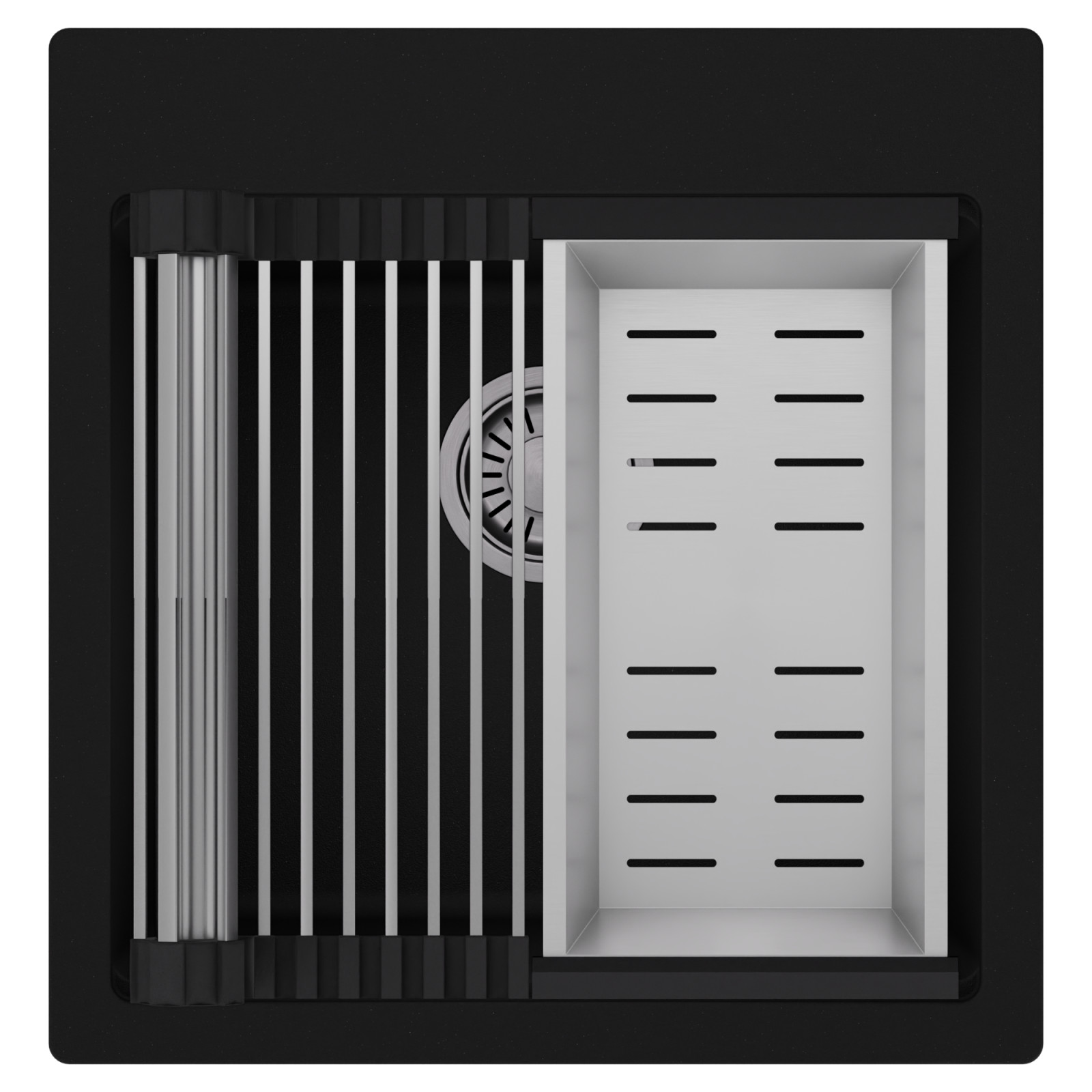HD Infinity 48 egymedencés mosogatótálca szett, csepegtetőráccsal és kosárral, matt fekete