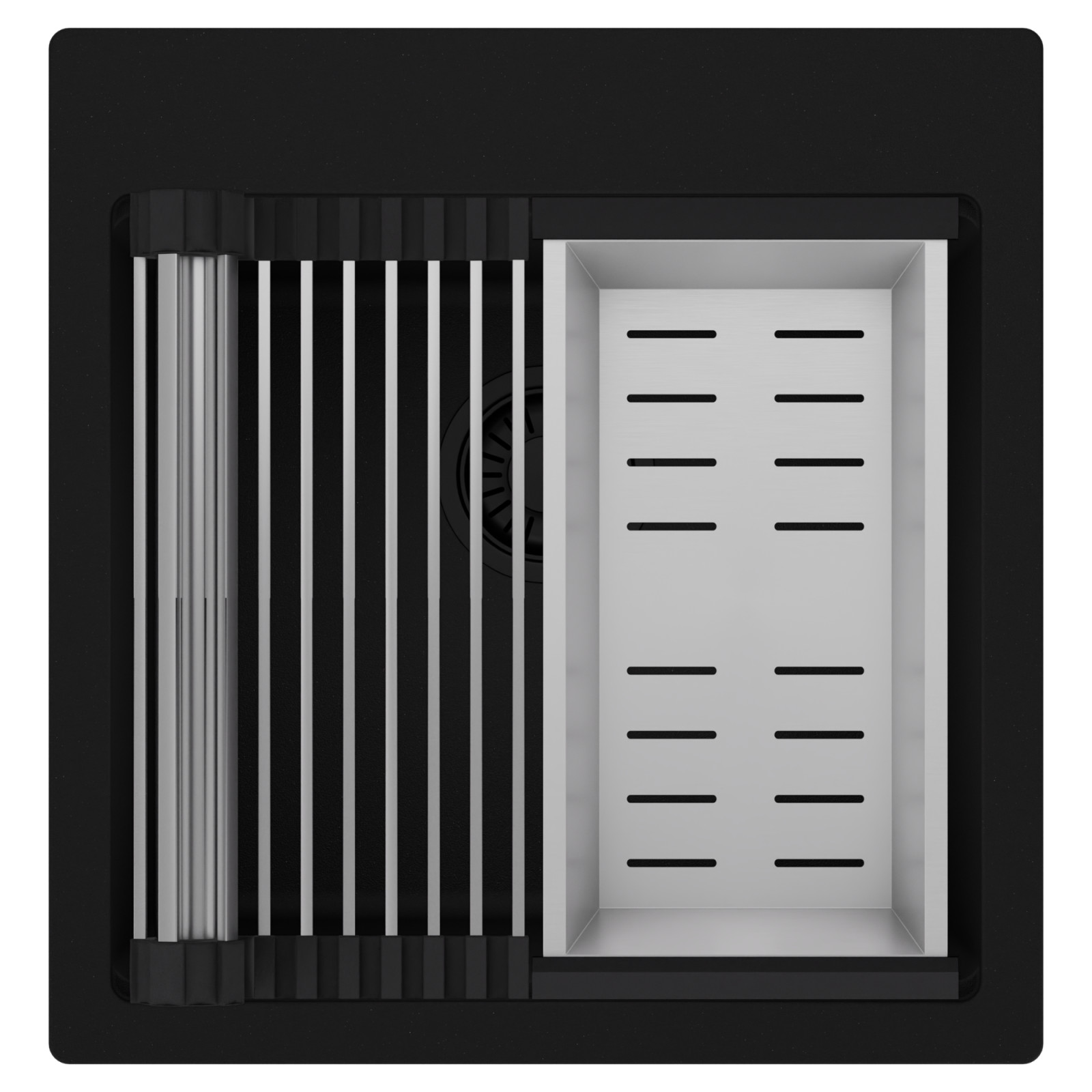HD Infinity 48 egymedencés mosogatótálca szett, csepegtetőráccsal és kosárral, matt fekete