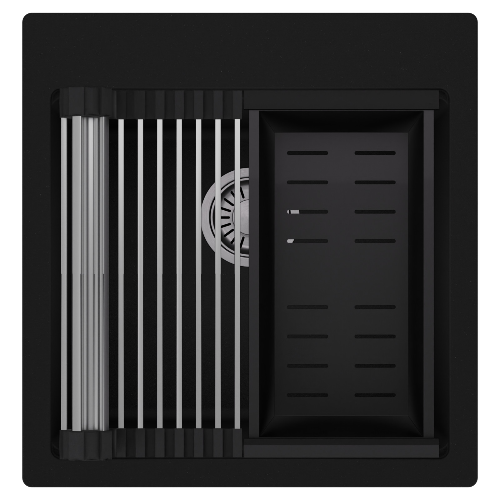 HD Infinity 48 egymedencés mosogatótálca szett, csepegtetőráccsal és kosárral, matt fekete