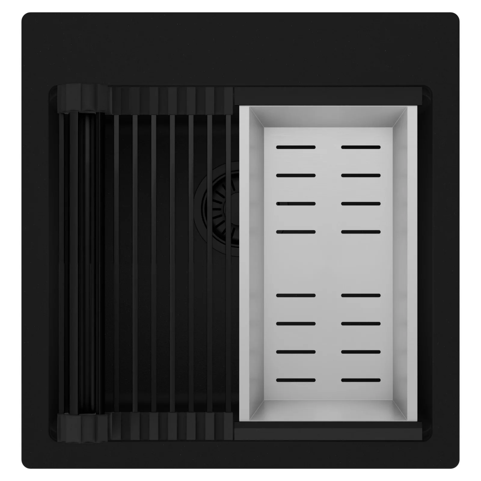 HD Infinity 48 egymedencés mosogatótálca szett, csepegtetőráccsal és kosárral, matt fekete