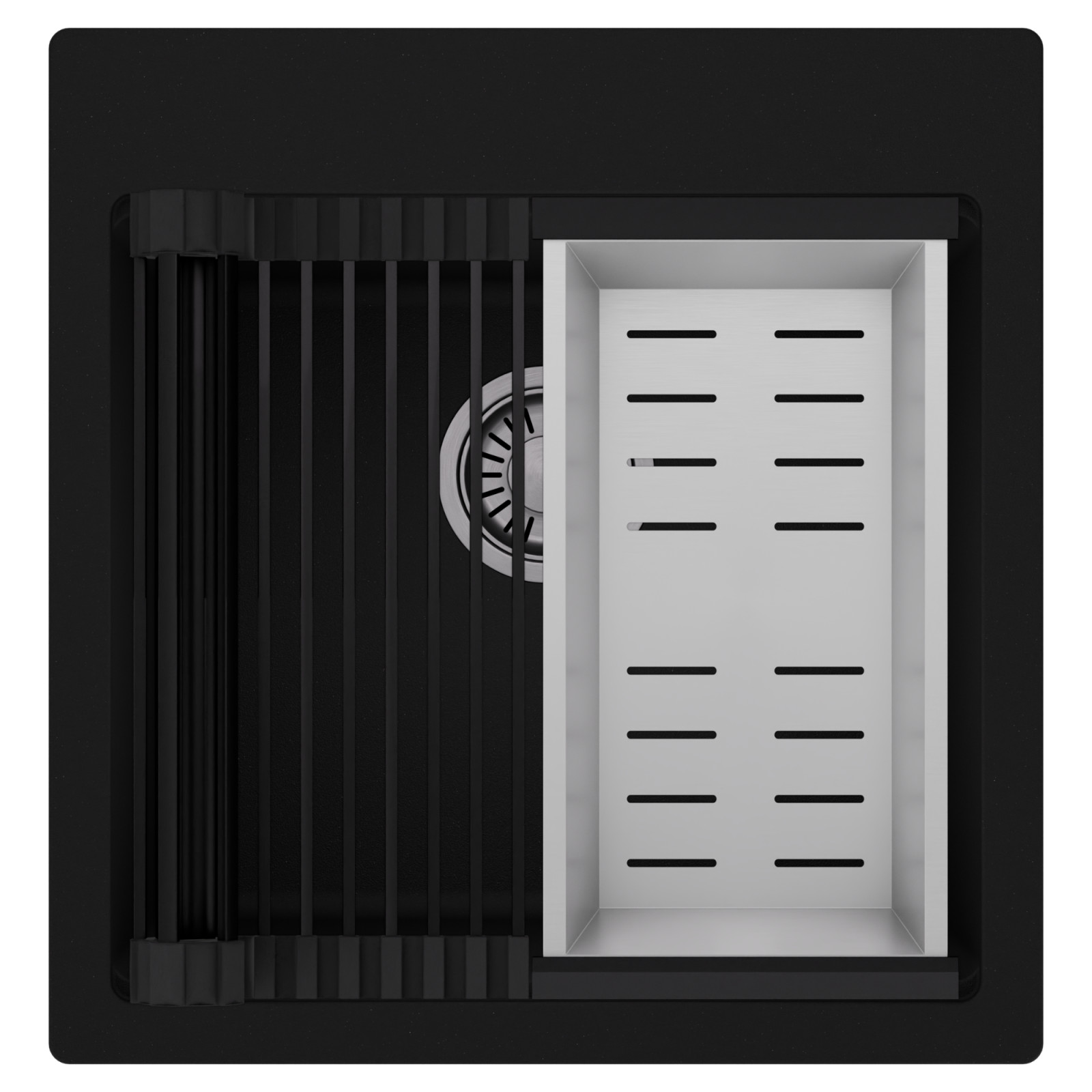 HD Infinity 48 egymedencés mosogatótálca szett, csepegtetőráccsal és kosárral, matt fekete