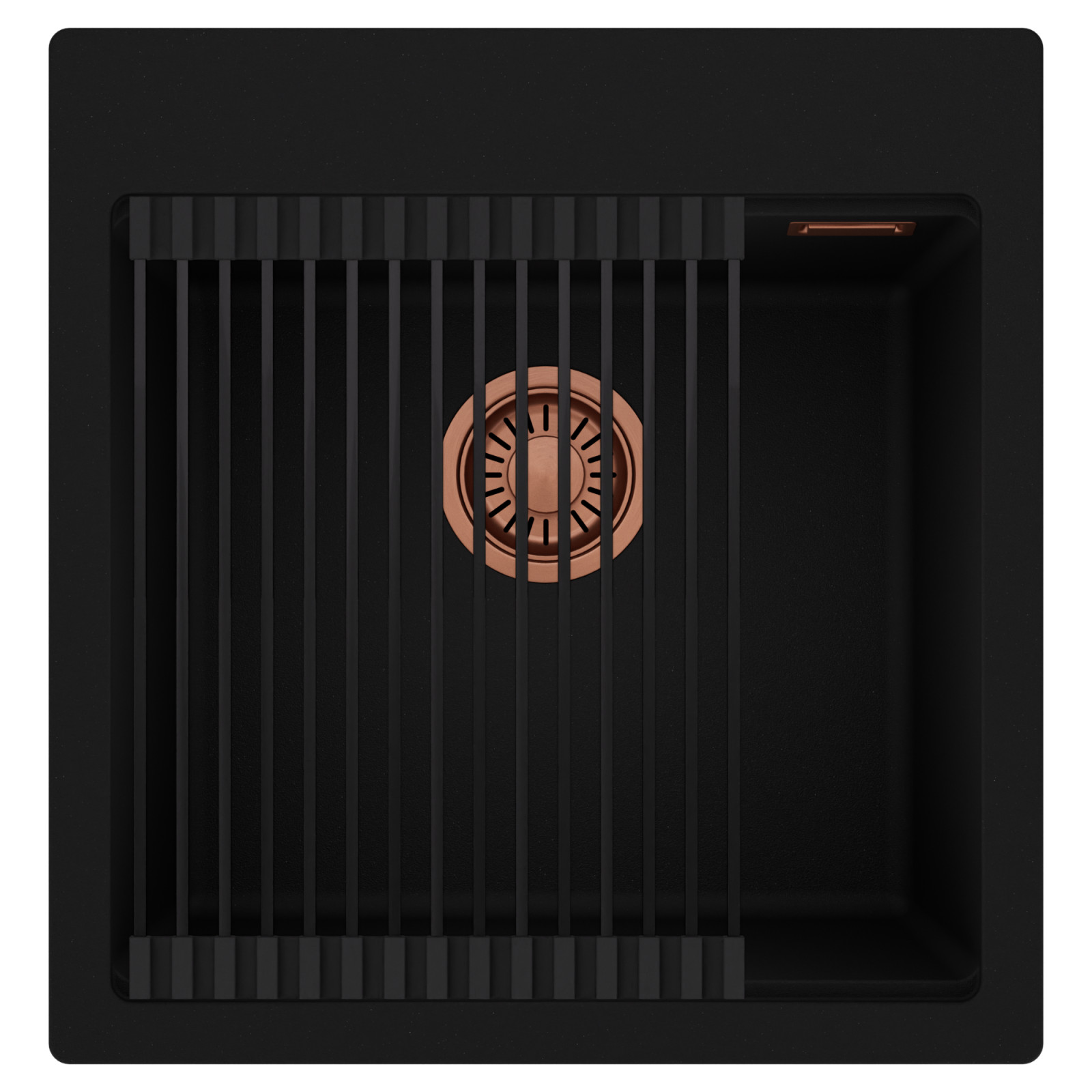 A mosogató prémium minőségű gránit kompozitból készült. Letisztult megjelenése mellett rendkívül praktikus, így bármilyen stílusú konyhába harmonikusan illeszkedik. A strapabíró gránit anyag hosszú távon is megbízható használatot garantál.