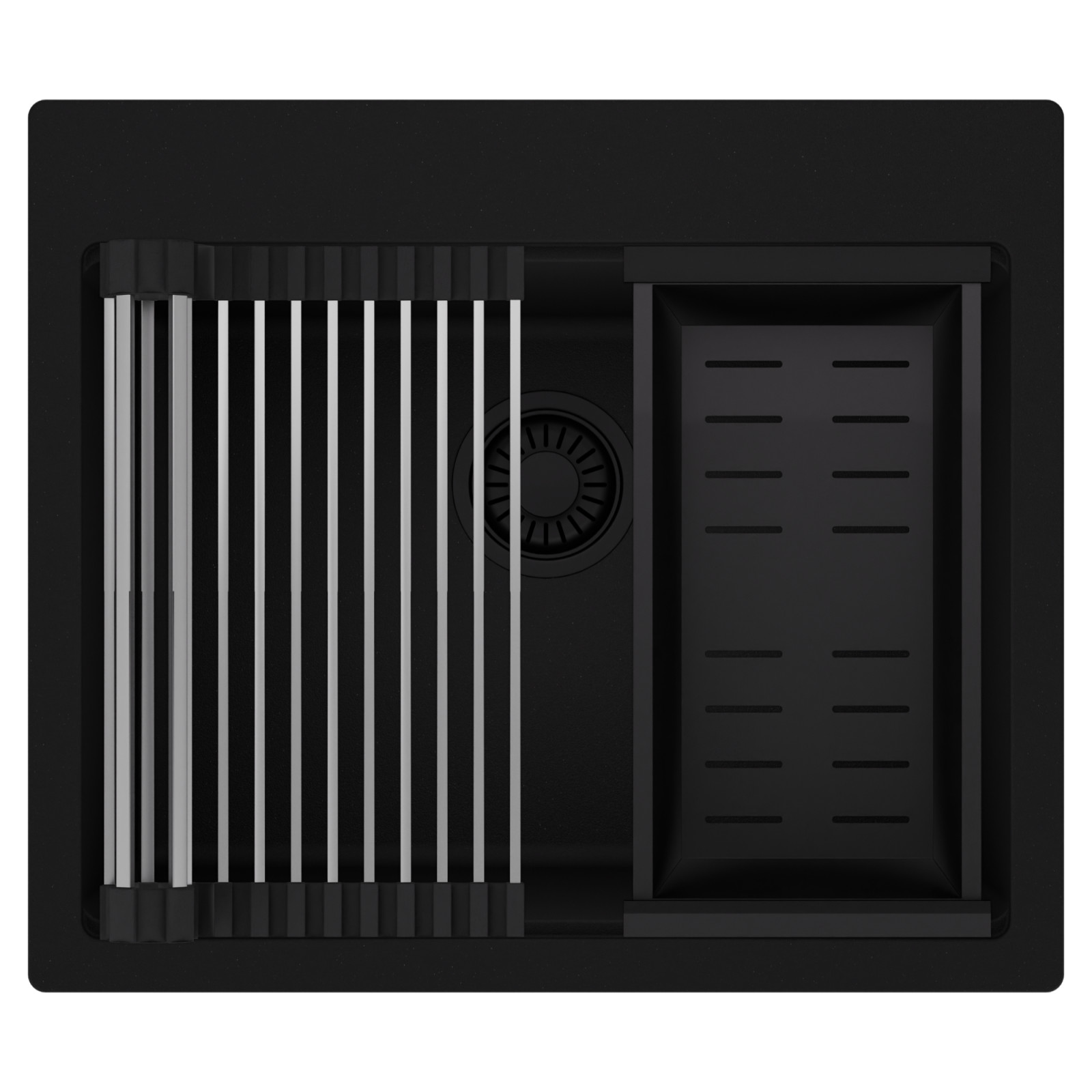 HD Infinity 58 egymedencés mosogatótálca szett, csepegtetőráccsal és kosárral, matt fekete