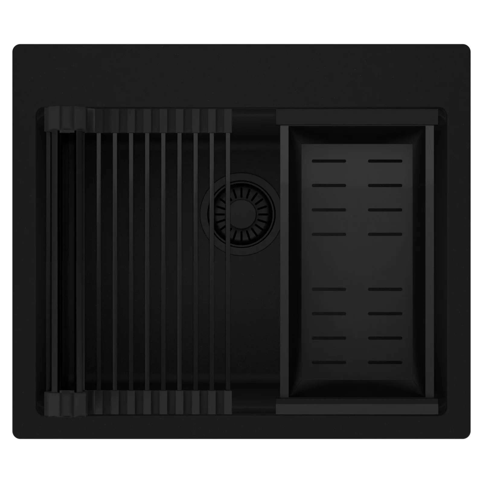 HD Infinity 58 egymedencés mosogatótálca szett, csepegtetőráccsal és kosárral, matt fekete