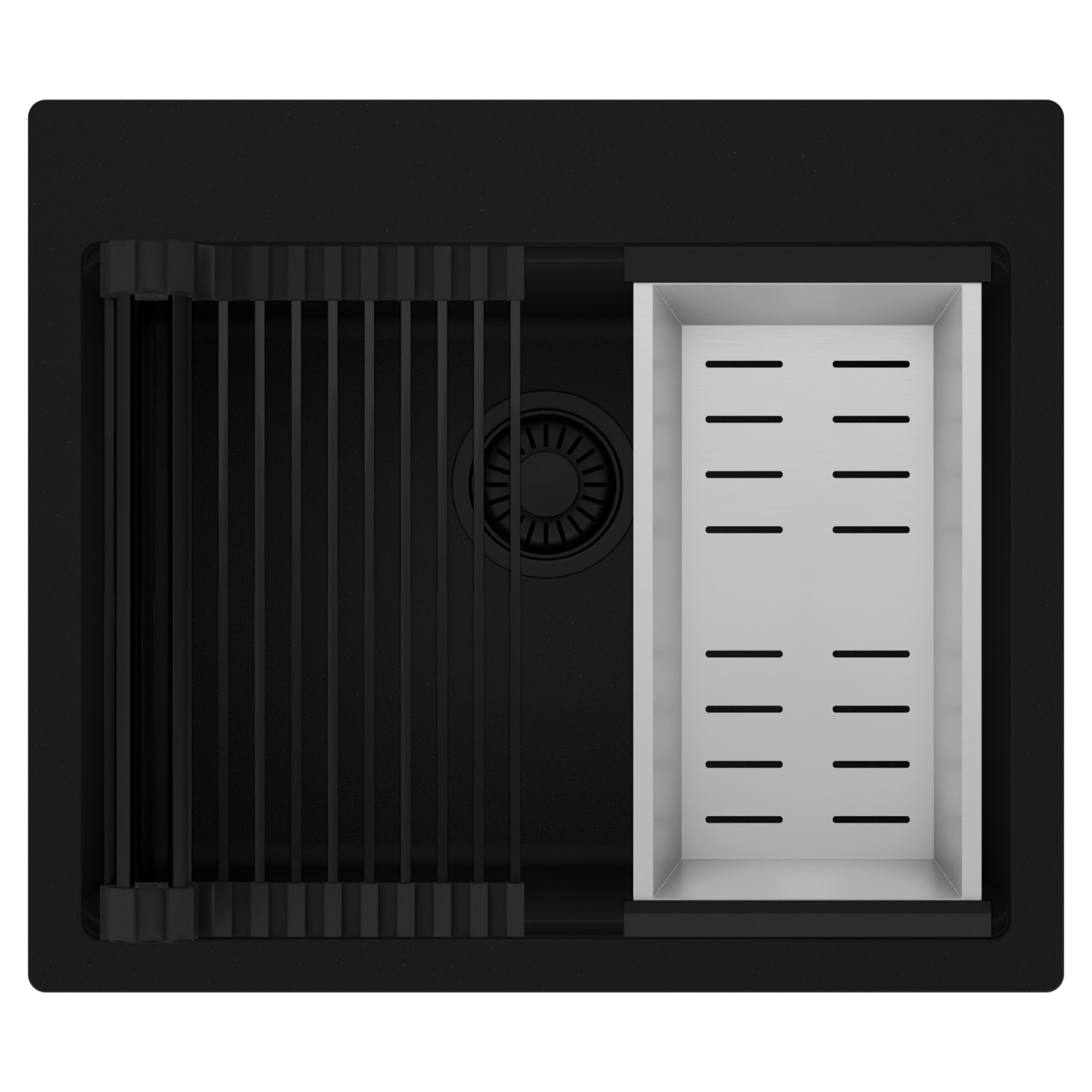 HD Infinity 58 egymedencés mosogatótálca szett, csepegtetőráccsal és kosárral, matt fekete