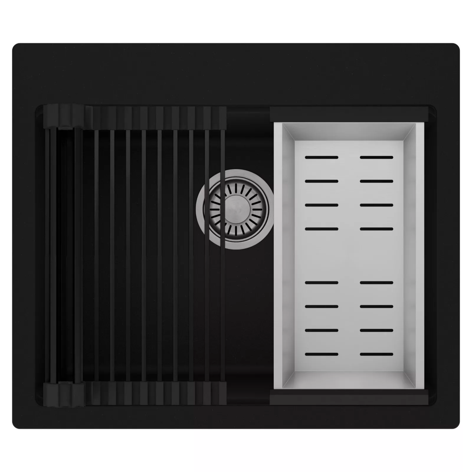 HD Infinity 58 egymedencés mosogatótálca szett, csepegtetőráccsal és kosárral, matt fekete