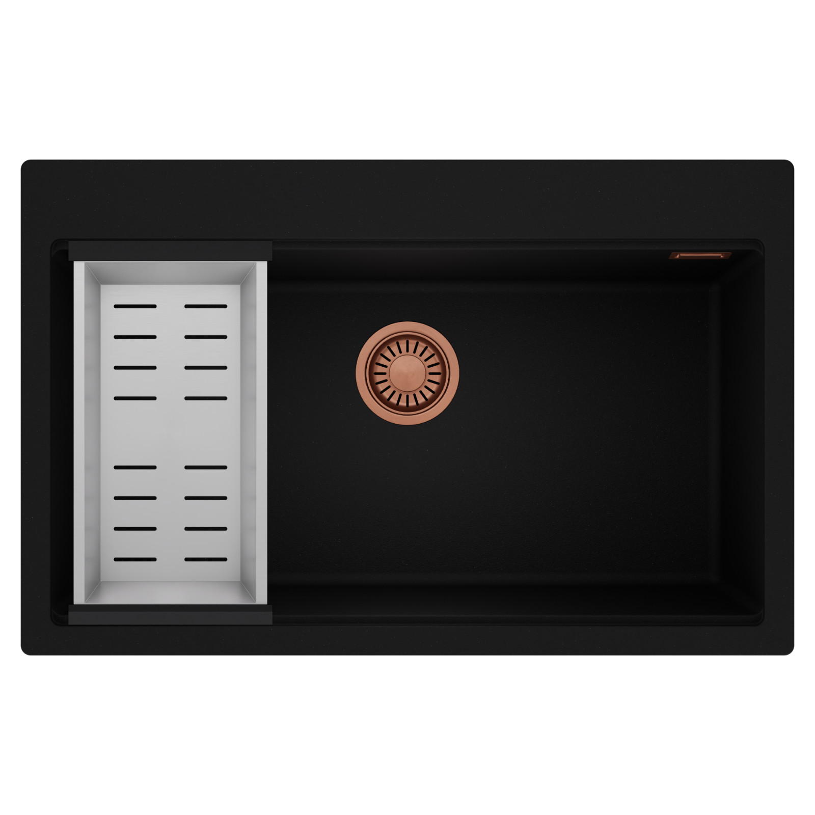 A mosogató prémium minőségű gránit kompozitból készült. Letisztult megjelenése mellett rendkívül praktikus, így bármilyen stílusú konyhába harmonikusan illeszkedik. A strapabíró gránit anyag hosszú távon is megbízható használatot garantál.