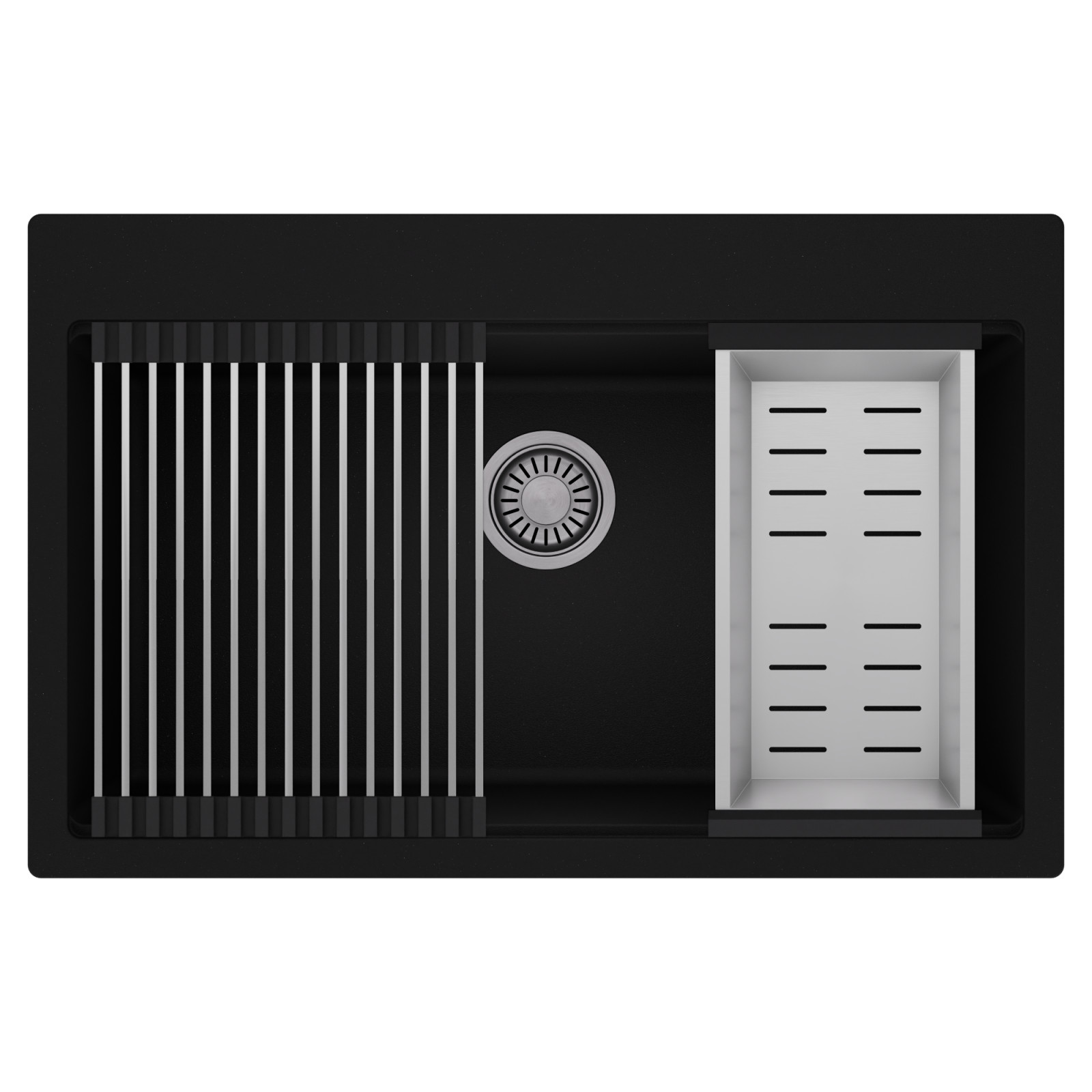 HD Infinity 78 egymedencés mosogatótálca szett, csepegtetőráccsal és kosárral, matt fekete