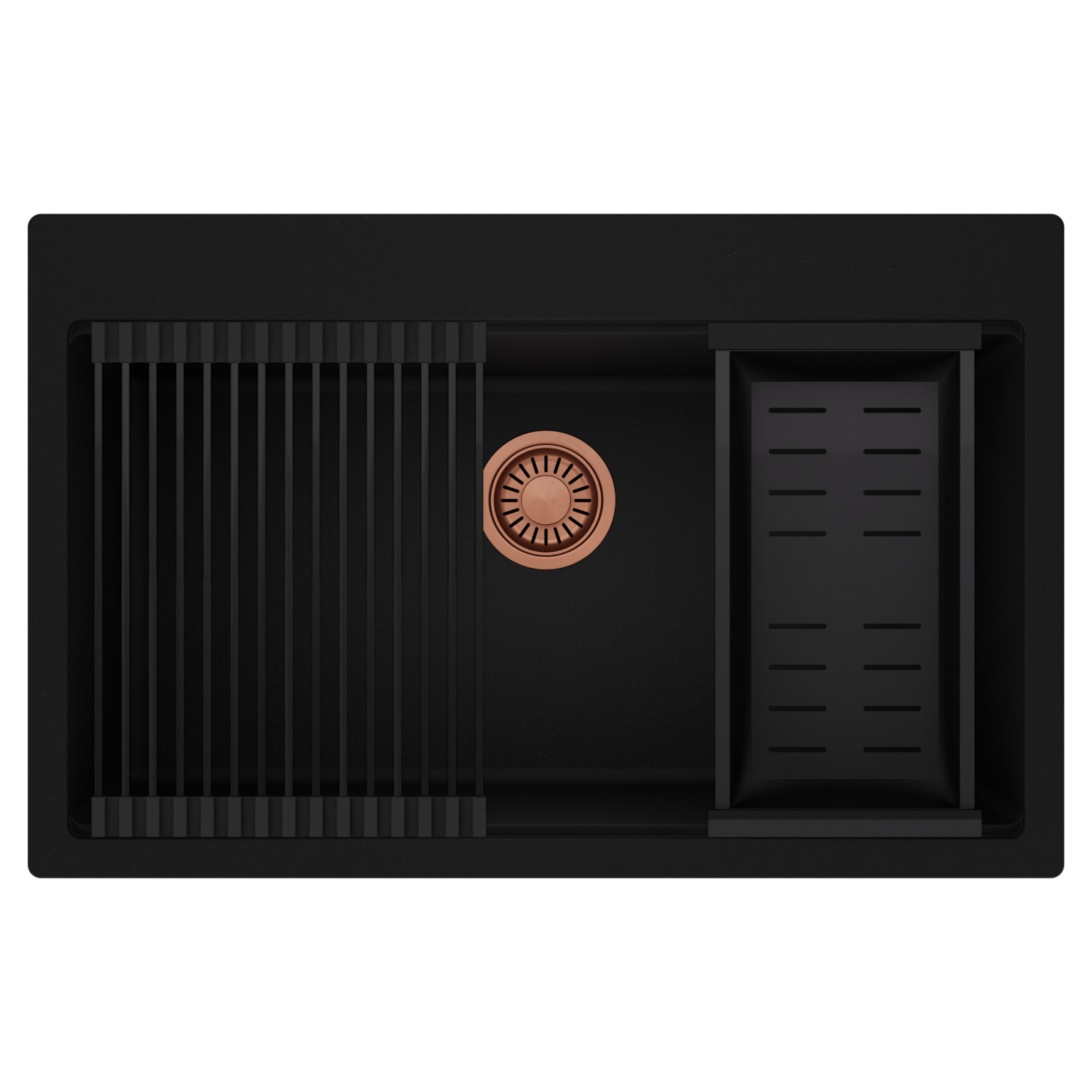 HD Infinity 78 egymedencés mosogatótálca szett, csepegtetőráccsal és kosárral, matt fekete