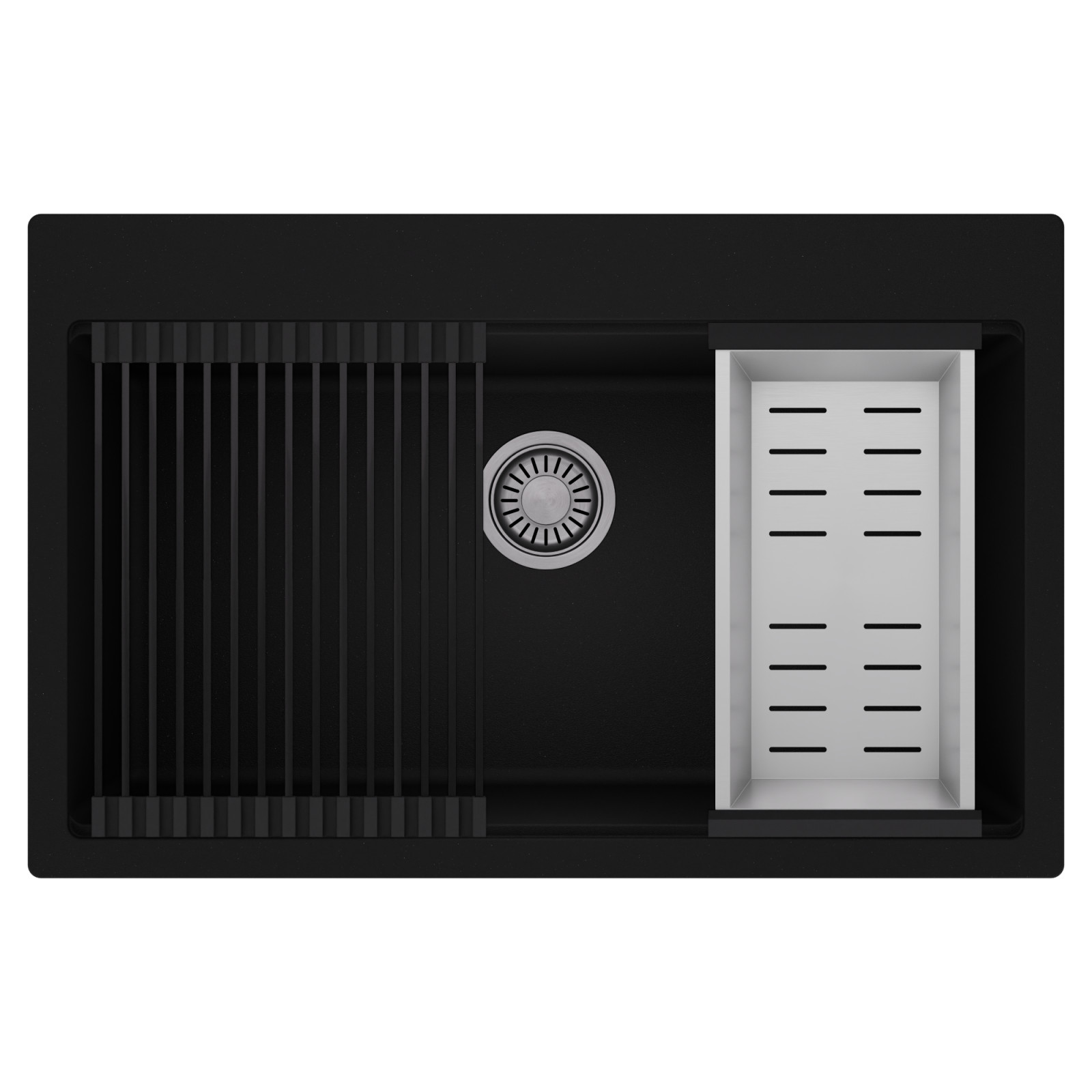 HD Infinity 78 egymedencés mosogatótálca szett, csepegtetőráccsal és kosárral, matt fekete