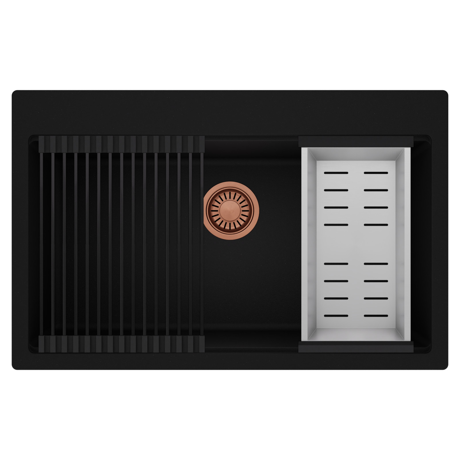 HD Infinity 78 egymedencés mosogatótálca szett, csepegtetőráccsal és kosárral, matt fekete