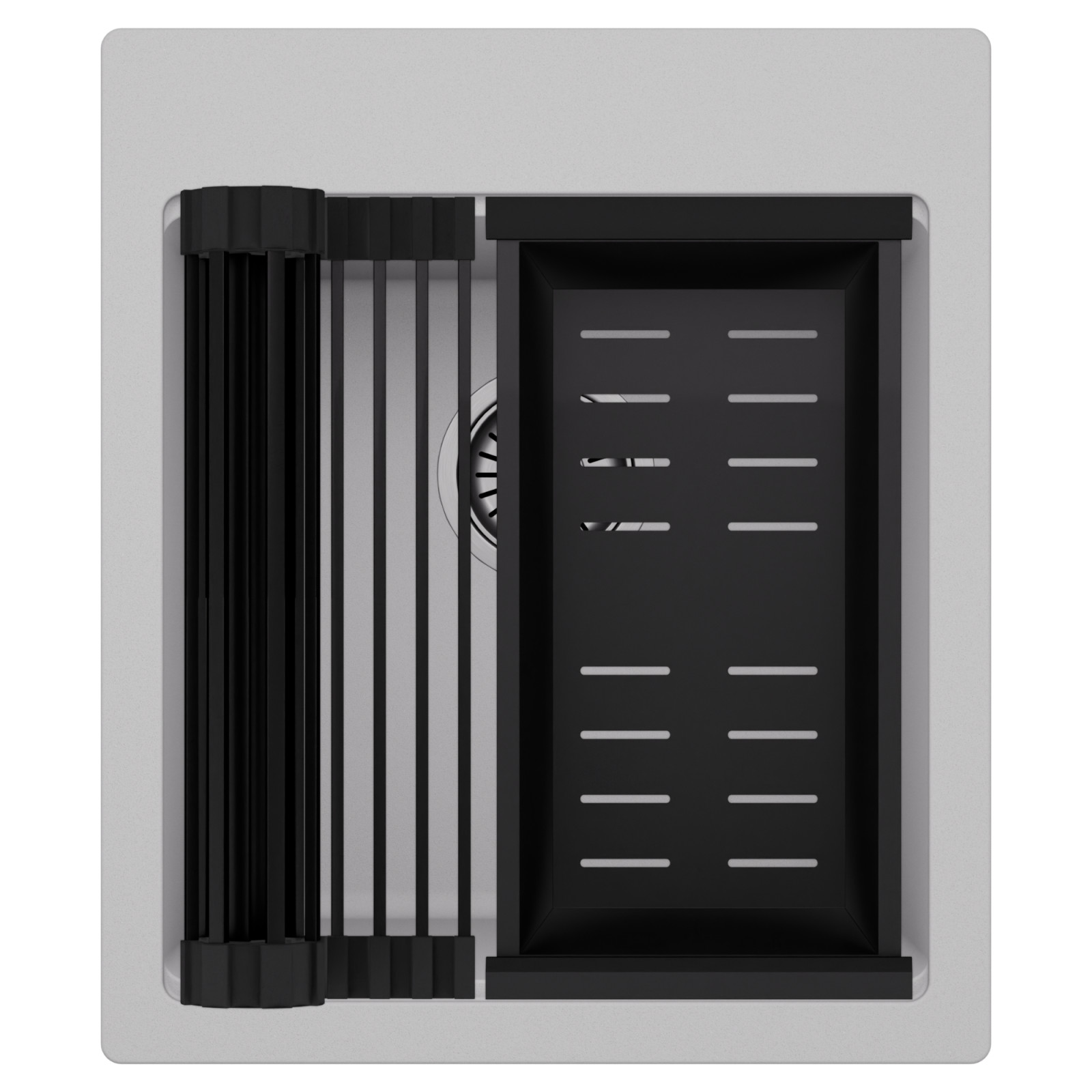 HD Infinity Grey 43 egymedencés mosogatótálca szett, csepegtetőráccsal és kosárral, alpesi szürke